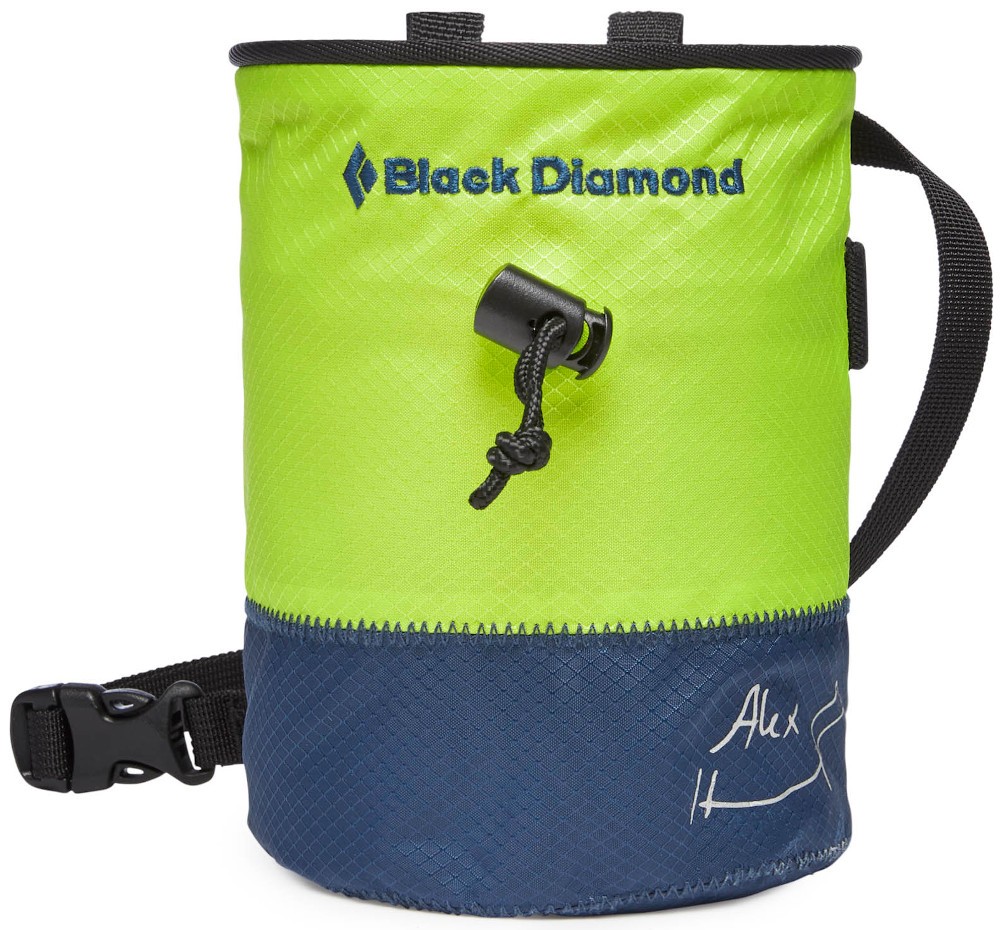 Black Diamond Freerider Chalk Bag to ekskluzywny woreczek wspinaczkowy na magnezję o usztywnionym kołnierzu, sygnowany przez Alexa Honnolda. Sztywny otok pozwala na dokładne dozowanie magnezji bez jej rozsypywania a jednocześnie sięgając do niego ręką podczas wspinania nie natrafimy na pofałdowany materiał, utrudniający pobieranie magnezji. Woreczek wyposażono w szlufkę na szczoteczkę, ściągacz zabezpieczający magnezję przed rozsypaniem oraz pasek z klamrą.