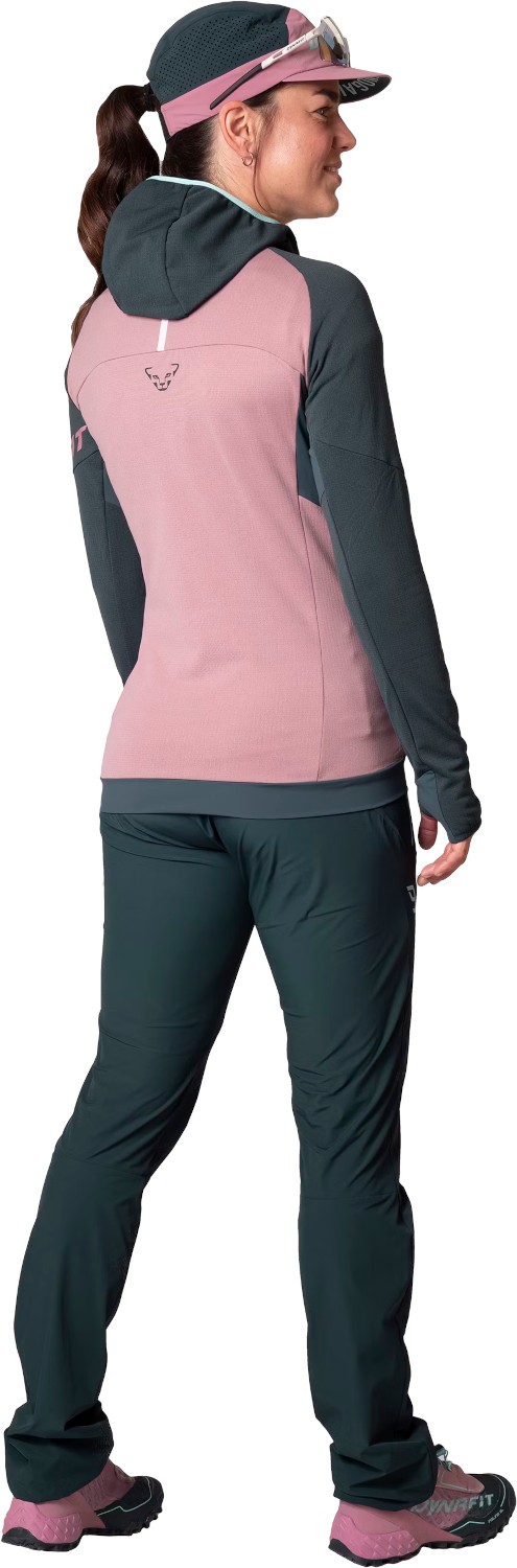 Dynafit Transalper Polartec Hooded Women to oddychająca, ciepła i wszechstronna kurtka termiczna z kapturem. Transalper Polartec zapewnia niezawodną izolację i ochronę podczas uprawiania sportów górskich. Aby mieć pewność, że nie zmarzniesz podczas przerwy na odpoczynek na szczycie lub nie zamarzniesz podczas zejścia, na każdą wyprawę w góry powinieneś zawsze mieć w plecaku warstwę izolującą. Techniczny polar termiczny Dynafit Transalper Polartec idealnie nadaje się jako warstwa środkowa lub lekka warstwa izolacyjna podczas zmiany pory roku lub w chłodne letnie dni. Transalper Polartec to praktyczny, stylowy, wszechstronny element zapewniający komfort termiczny. Zastosowany materiał Polartec Power Grid Solid zdobywa punkty dzięki wysokiej oddychalności, dzięki czemu nie przegrzewasz się podczas wysiłku. Miękka, wygodna struktura waflowa po wewnętrznej stronie nie tylko zapewnia doskonałe właściwości izolacyjne, ale także sprawia, że ​​tkanina jest lżejsza, bardziej rozciągliwa i łatwiejsza do spakowania. Szybko odprowadza wilgoć ze skóry, która następnie może odparować z gładkiej powierzchni zewnętrznej. Krój kurtki Dynafit Transalper Polartec jest sportowy i przylega do ciała, dzięki czemu można ją wygodnie nosić również pod kurtką przeciwdeszczową. Praktyczne otwory na kciuki to kolejny dodatek zapewniający wygodę. Dopasowany kaptur zapewnia niezawodną ochronę głowy przed wiatrem i zapobiega wychłodzeniu. Dwie duże przednie kieszenie zapinane na zamek zapewniają dużo miejsca na niezbędne dodatki.
