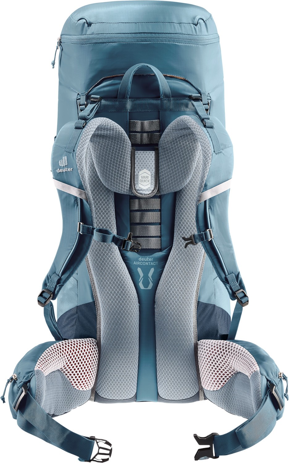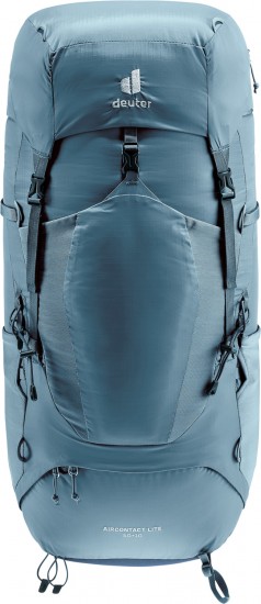 Seria Aircontact Lite to super lekkie plecaki do trekkingu i turystyki. Deuter Aircontact Lite 50+10 jest idealnym plecakiem na kilkudniowe wypady w góry lub poza miasto, dzięki jego efektywnej kompresji może służyć zarówno jako plecak dodatkowy (1 dniowy) jak i jako główny plecak transportowy przy kilkudniowych wypadach. Podstawową zaletą tego modelu jest to, że przy maksymalnym załadowaniu wynoszącym 50 litrów waży tylko 1640g! Jego smukła sylwetka pozwala pokonywać najbardziej ekstremalne przejścia, szeroki pas biodrowy doskonale przenosi ciężar ładunku na biodra. Możliwość precyzyjnej regulacji systemu nośnego do wzrostu poprawia zastosowany system Vari-Quick. Boczne troki kompresyjne pozwalają na efektywne zmniejszenie jego pojemności. We wszystkich modelach serii Aircontact Lite, zastosowano system zapięcia pasa biodrowego poprzez ściągnięcie troków przed sobą, taki mechanizm wymaga od użytkownika zdecydowanie mniej siły przy zapięciu pasa oraz zdecydowanie poprawia precyzję jego dopasowania. Dodatkowo od frontu plecak posiada dużą elastyczną kieszeń, umożliwiającą schowanie kurtki, kasku lub mokrych rzeczy i szybsze tym samym ich wysuszenie.