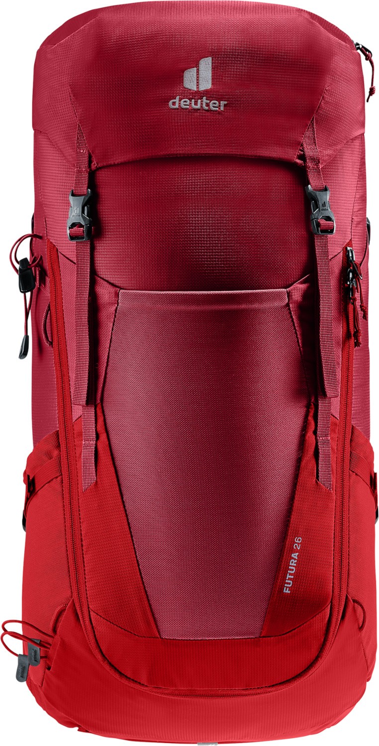 Deuter Futura to nowatorski plecak o wszechstronnym zastosowaniu - znakomicie spisze się w terenie, może służyć także jako duży plecak miejski. Rewelacyjną oddychalność zapewnia system Deuter Aircomfort Sensic System - specjalna siatka oddziela plecy od plecaka, takie rozwiązanie jest niezastąpione podczas upałów a także wakacji w tropikach. System Aircomfort Sensic sprawdzi się również podczas chłodnych dni, szczególnie jeżeli używamy odzieży z membraną, wówczas siatka pozwala na swobodną cyrkulację powietrza i lepsze odparowanie wilgoci z ciała. Plecak trekkingowy Futura zapinany jest klapą w której mieszczą się dwie kieszenie. Na frontowej części plecaka, umieszczono dodatkową kieszeń, która jest zapinana się na suwak. Boczne troki kompresyjne pozwalają efektywnie zmniejszać jego objętość. Zastosowano przeciwstawny sposób zaciągania pasa biodrowego (pasy ściągamy przed siebie) co pozwala na użycie mniejszej siły z jednoczesnym precyzyjniejszym dopasowaniem pasa. System nośny, udoskonalono poprzez wbudowanie dodatkowej pianki z miejscu styku pleców w odcinku lędźwiowym z plecakiem, Dzięki czemu uzyskano większy komfort, wentylację i doleganie.