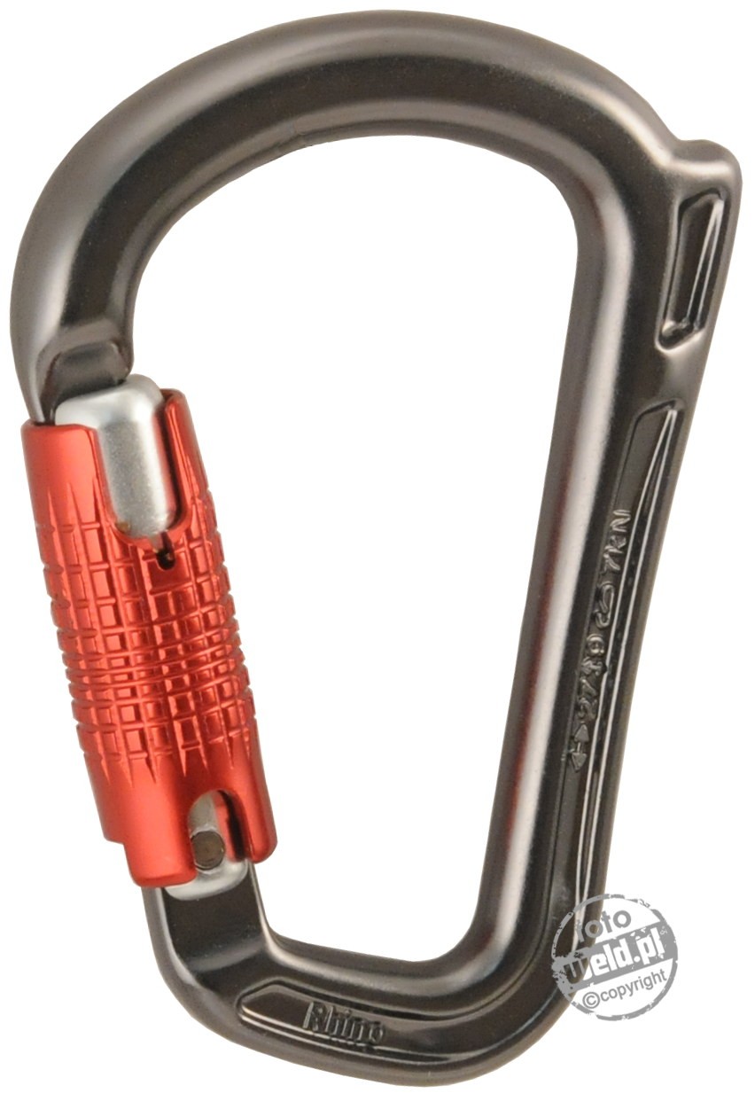Profesjonalny karabinek asekuracyjny. DMM Rhino świetnie sprawdzi się we współpracy z wszelkimi przyrządami asekuracyjnymi (dla przykładu zdjęcie 3 przedstawia układ z Gri Gri II), półwyblinką czy bloczkami. Karabinek wyposażono w specjalny grzbiet umiejscowiony na body po przeciwnej stronie zamka. Takie rozwiązanie nie dopuszcza do przesuwania się przyrządów czy bloczków po obwodzie karabinka. Górna część body, współpracująca z przyrządami i liną posiada owalny profil pozbawiony wytłoczeń, dzięki czemu zachowana jest płynność pracy lin i przyrządów. Dolna część została wyprofilowana i wyposażona w płaskie, obszerne dno (dla przykładu zdjęcie 4 - idealne spasowanie z łącznikiem uprzęży) - pomimo braku elementu zabezpieczającego (blokada), karabinek nie okręca się na łącznikach uprzęży. Karabinek Rhino posiada niehaczący, szybki i bezpieczny zamek typu Quicklock.