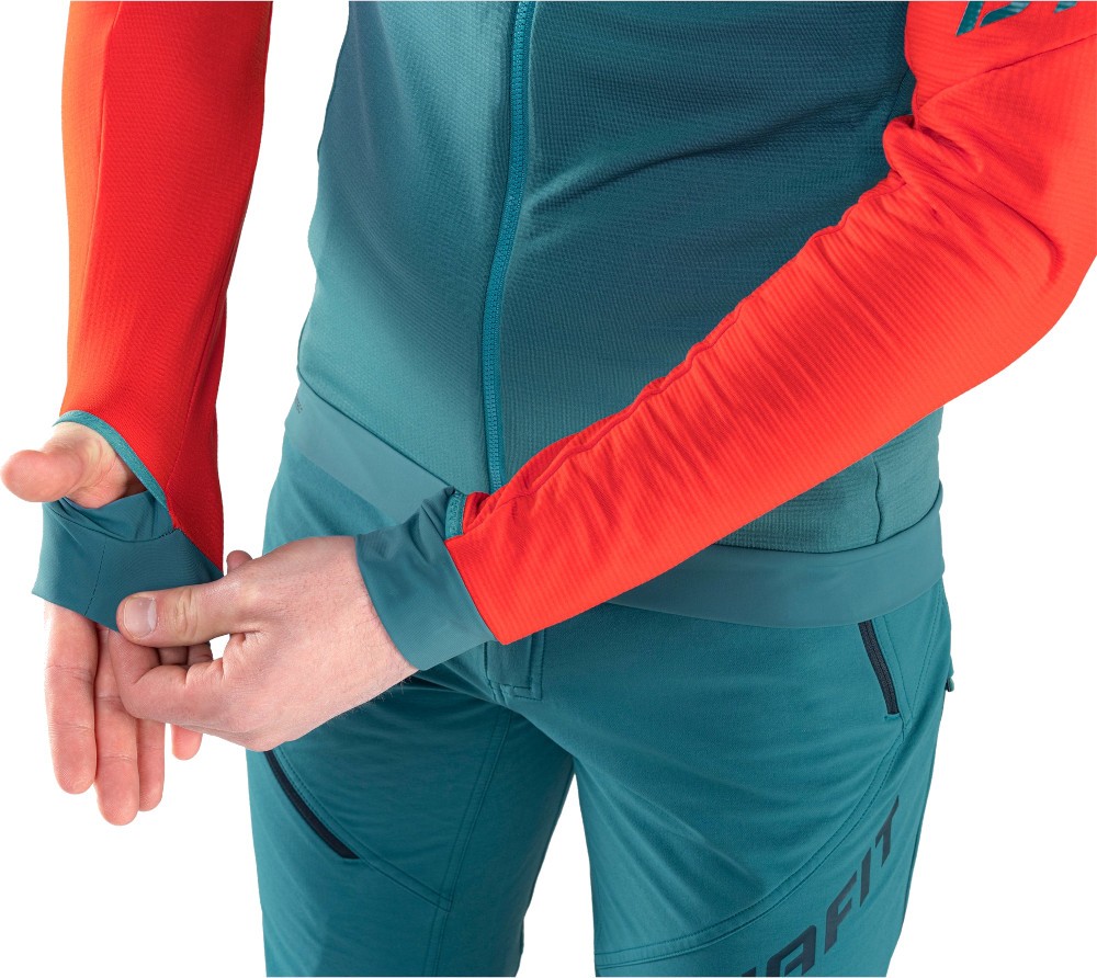 Dynafit Radical Polartec to lekka techniczna warstwa wewnętrzna wykonana z wykończonego nylonem polarowego materiału Polartec Power Grid. Jest to model, który znajdzie wielorakie zastosowanie. W cieplejsze dni będzie mógł być użytkowany solo, podczas poważnych wypraw a w chłodniejsze dni znajdzie zastosowanie jako warstwa termiczna. Jeszcze lepsza wytrzymałość podczas skitourów i codziennego użytkowania. Lekka techniczna bluza Dynafit Radical z materiału Polartec w technologii 4-way stretch posiada dopasowany kaptur oraz mankiety z otworami na kciuk dla optymalnego komfortu użytkowania i maksymalnej swobody ruchu. Mała kieszeń na piersi to świetne miejsce na telefon lub inne drobiazgi, które zawsze chcesz mieć pod ręką. Tego typu, wygodna kurtka to także świetny kompan na skitur i na co dzień.