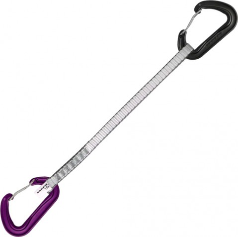 Ekspres wspinaczkowy DMM Wisp zapewnia znaczną oszczędność wagi wspinaczom na długich, technicznych drogach. Połączenie 22-gramowego karabinka Wisp z lekką taśmą Dyneema pozwala na zmniejszenie łącznej masy całego zestawu, co przekłada się na większą efektywność na wielowyciągowych drogach tradycyjnych i alpejskich. Karabinki posiadają 20-milimetrowy prześwit zamka, co zapewnia niezawodne działanie i wpinanie pomimo kompaktowych rozmiarów. Dzięki temu Wisp pozostaje funkcjonalny w warunkach alpejskich, a jednocześnie bardzo lekki. Ekspres DMM Wisp stanowi połączenie dwóch karabinków z zamkiem drucianym za pomocą wąskiej taśmy Dyneema o długości 25cm i wytrzymałości 22kN. Karabinek przypisany linie wspinaczkowej został zabezpieczony gumką, wszytą w taśmę i schowaną wewnątrz ucha taśmy z dyneemy. Takie rozwiązanie uniemożliwia przesuwanie się dolnego karabinka w taśmie, ułatwiając wpinanie liny i zwiększając bezpieczeństwo wspinacza. Obydwa bardzo lekkie karabinki zostały wyprodukowane z aluminium 7075. W celu zwiększenia ich wytrzymałości i trwałości zostały poddane procesowi kucia na gorąco i anodyzacji. Ekspres DMM Wisp tak jak wszystkie produkty DMM posiada swój unikalny numer seryjny, naniesiony laserowo na obydwu karabinkach. Numer seryjny umożliwia dokładne sprawdzenie daty produkcji danego elementu. Ekspresy Wisp, jak i inne produkty DMM zostały wyprodukowane w fabryce w Walii, gdzie technologie i kontrola jakości spełniają najwyższe, europejskie standardy. DMM Wisp o długości 25cm to bardzo lekkie ekspresy do wspinaczki wielo-wyciągowej oraz do wspinaczki sportowej w stylu on-sight.