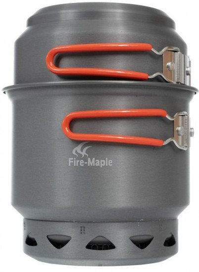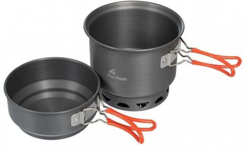 Zestaw aluminiowych garnków z radiatorem i składanymi uchwytami. Garnek Fire Maple FMC-217 to idealny zestaw dla każdego kto samotnie lub z drugą osobą przemierza górskie, rowerowe czy kajakowe szlaki, śpi na kempingu i zamierza gotować w terenie. Kubek o pojemności 900ml i głęboka pokrywka 500ml pozwalają na przygotowanie prostego posiłku w każdych warunkach. Naczynia zostały wykonane z mocnego, odpornego na zniszczenia anodyzowanego aluminium. Są lekkie i wytrzymałe. Kubek wyposażono w radiator, który przyspiesza gotowanie. Zarówno pokrywka, jak i garnek mają składane uchwyty pokryte izolacją. Pozwalają one na bezpieczne przenoszenie naczyń z palnika i zapobiegają przypadkowemu poparzeniu. Z kolei w transporcie, złożone po bokach garnków nie zajmują miejsca i zestaw można bez problemu zabrać do plecaka czy rowerowej sakwy.