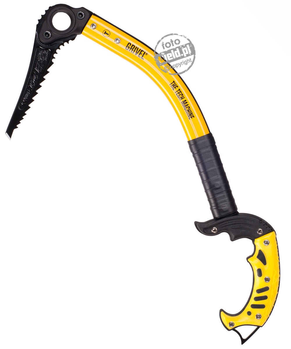 Grivel Tech Machine to propozycja czekana przeznaczonego do ekstremalnej wspinaczki w lodzie i drytoolingu. Głowica składa się z jednego kawałka kutej stali wyposażonej w wielu miejscach w ząbki ułatwiające haczenie. Czekan posiada profilowane stylisko umożliwiające dzięki specjalnym podporom pewny chwyt na jego dowolnej wysokości. Dodatkowym atutem jest specjalna, bardzo trwała okładzina z tworzywa zapobiegająca obsuwaniu się dłoni. Doskonałe wyważenie umożliwia pokonywanie za pomocą Tech Machine najtrudniejszych przejść w zróżnicowanych formacjach terenowych. Dwie śruby mocujące pozwalają na szybką wymianę zużytego ostrza, dzięki czemu czekan cały czas spełnia najwyższe parametry wytrzymałościowe i jakościowe.