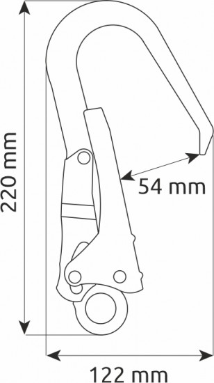 Camp Hook Steel 54mm to stalowy karabinek do pracy na dużych konstrukcjach. Camp Hook 54mm to wytrzymały stalowy karabinek, zaprojektowany specjalnie do pracy na dużych konstrukcjach, takich jak rusztowania i metalowe konstrukcje. Dzięki dużemu prześwitowi 54mm umożliwia szybkie i pewne wpięcie do szerokich elementów, co czyni go niezastąpionym w pracach wysokościowych i przemysłowych. Karabinek został wyposażony w podwójny system blokowania dźwigniowego, który gwarantuje wysoki poziom bezpieczeństwa oraz łatwość użytkowania. Konstrukcja ze stali zapewnia wyjątkową trwałość i odporność na zużycie, nawet w trudnych warunkach pracy.