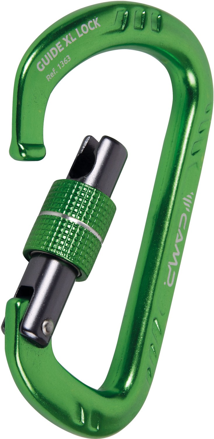 Camp Guide XL to bardzo mocny i wytrzymały karabinek do intensywnej eksploatacji. Duży prześwit oraz duży zakres otwarcia zamka sprawia, że to Idealne rozwiązanie dla wspinających się w skałach jak i pracowników wysokościowych oraz do ratownictwa. Guide XL posiada system zamykania SphereLock, który cechuje większa wytrzymałość niż ma to miejsce w wypadku innych niehaczących systemów zamykania zamków w karabinkach wspinaczkowych. Dodatkową zaletą jest również duży prześwit umożliwiający swobodne operacje sprzętowe. Zakręcany karabinek Camp Guide Lock jest podstawowym karabinkiem w ofercie marki. Z powodzeniem może być wykorzystywany zarówno jako karabinek do przyrządu asekuracyjnego jak i do tworzenia stanowisk.