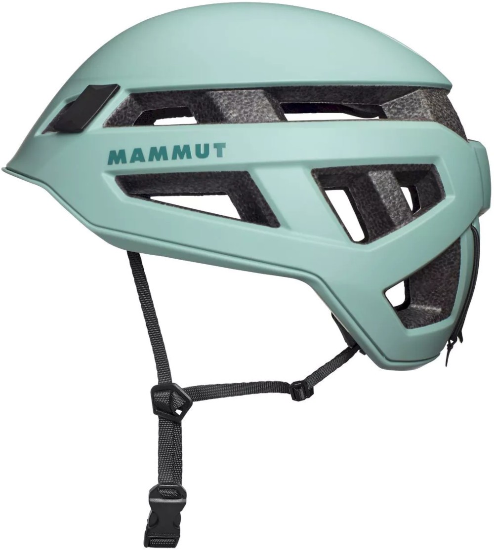 Kask wspinaczkowy Mammut Crag Sender to lekki model stworzony z myślą o każdej formie wspinania. Mammut Crag Sender sprawdzi się podczas wspinaczki sportowej jak i alpejskiej. Bardzo lekka skorupa została wyposażona we wzmocnienia z Kevlaru. Wewnętrzną warstwę kasku wykonano z EPS (wysoko spieniony polistyren), który pochłonie energię uderzenia i zapewni bezpieczeństwo głowie użytkownika. Kask wspinaczkowy Mammut Crag Sender wyposażono w szesnaście otworów, które wentylują i odprowadzają nadmiar ciepła na zewnątrz. Płynna regulacja obwodu za pomocą małego pokrętła i systemu pasków zapewni idealne dopasowanie kasku do głowy wspinacza. Kask Crag Sender ma dwa klipsy i zapięcie z tyłu wykonane z elastycznej gumki, zapięcia służą do montażu latarki czołowej i gogli narciarskich.