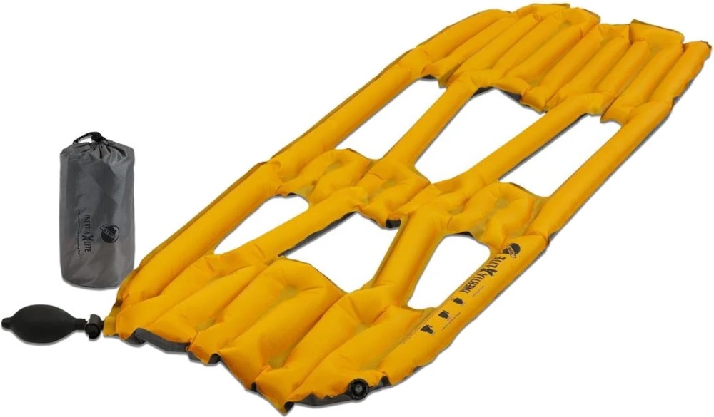 Klymit Inertia X Lite to najlżejsza i najmniejsza mata, zmieści się nawet w kubku na herbatę. Całość waży tylko 193g, a zostawiając w domu pokrowiec i zestaw naprawczy można ją zredukować do zaledwie 160g! Styl Light & Fast rządzi! Nowoczesna technologia Body Mapping pozwoliła ograniczyć wagę i objętość do minimum. Mata zapewnia wsparcie tylko w najważniejszych punktach styku ciała z podłożem. Resztę tworzą opatentowane Loft Pockets, czyli przestrzenie w których śpiwór może się rozprężyć dając izolację termiczną również od spodu. Długość 3/4 oznacza, że nogi śpią poza materacem. Dla lepszej stabilności matę można włożyć do śpiwora. Potrzebę jej stosowania warto przetestować przed wyjazdem. Walcząc o każdy gram wyposażenia może okazać się, że siła płuc wystarczy do uzyskania odpowiedniego komfortu a 20g bagażu zostanie w domu. Dla kogo ta mata? Dla świadomych i zdecydowanych zwolenników skracania i przycinania wszelkich zbędnych gramów wyposażenia, którzy mimo wszystko nie chcą spać na gołej ziemi. Jest to bezkompromisowe podejście do idei Light & Fast. Aż trudno uwierzyć, że ten mały pakunek to materacyk do spania.