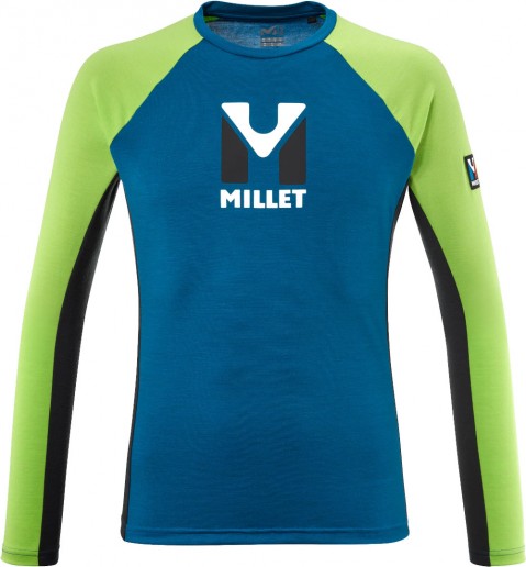 KOSZULKA TREKKINGOWA MILLET TRILOGY LOGO WOOL - SKY DIVER- ACID GREEN