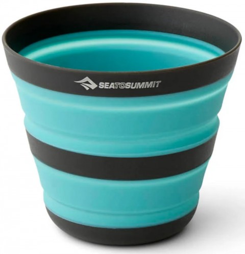 Sea to Summit Frontier Ultralight Cup to składany kubek o wadze 53g i pojemności 400ml. Jest idealny by napić się ulubionego napoju na biwaku. Kubek składany Sea to Summit Frontier Ultralight Collapsible Cup to nowoczesny i praktyczny kubek turystyczny stworzony z myślą o osobach, które cenią sobie lekkość, kompaktowość i wygodę podczas podróży. Idealnie sprawdzi się podczas trekkingu, biwakowania, górskich wypraw czy minimalistycznych podróży z plecakiem. Złożony kubek ma wysokość zaledwie około 17mm, co oznacza, że można go bez problemu zmieścić w plecaku, kieszeni kurtki lub schować do menażki z tej samej serii. Po rozłożeniu osiąga pojemność 400ml i nadaje się zarówno do zimnych, jak i gorących napojów. Kubek Frontier wykonany jest z wysokiej jakości silikonu spożywczego odpornego na wysoką temperaturę, a jego obręcz, spód i środkowy pierścień wzmocnione zostały nylonem z dodatkiem włókna szklanego. Dzięki temu kubek jest stabilny, zachowuje swój kształt po rozłożeniu, a przy tym nie nagrzewa się zbyt mocno, co chroni dłonie podczas picia gorących napojów. Do jego produkcji użyto materiałów wolnych od BPA. Za swoją funkcjonalność naczynia Sea to Summit były wielokrotnie nagradzane otrzymując tytuły: "Editors Choice 2015" przyznawanego przez Magazyn Backpacker, "Best New Gear 2015" przyznawanego przez Gear Institute oraz "Gear of The Year 2015" przyznawanego przez National Geographic Adventure.
