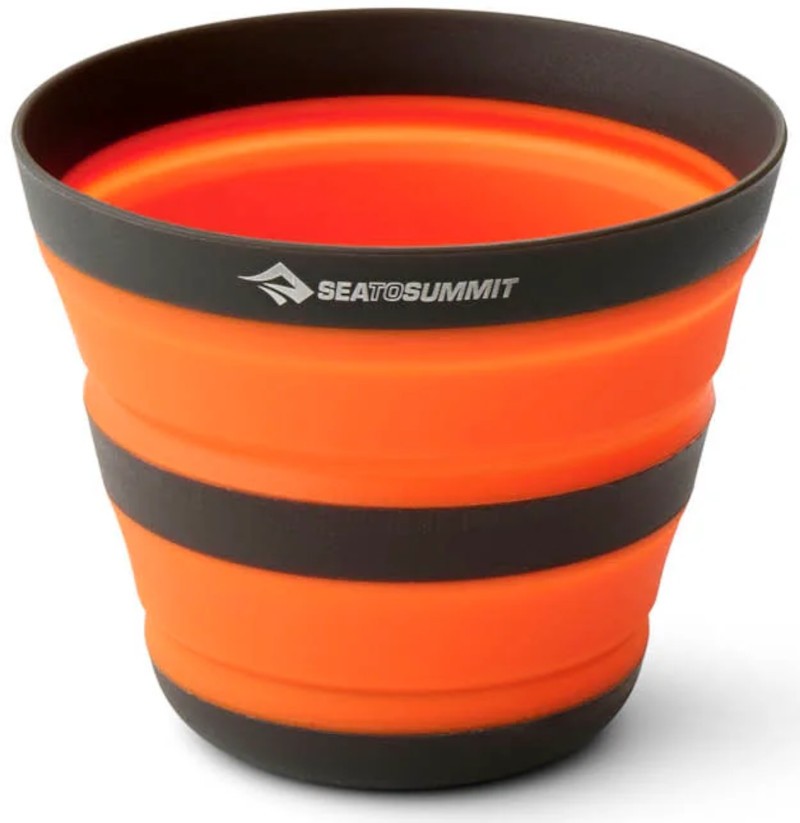 Sea to Summit Frontier Ultralight Cup to składany kubek o wadze 53g i pojemności 400ml. Jest idealny by napić się ulubionego napoju na biwaku. Kubek składany Sea to Summit Frontier Ultralight Collapsible Cup to nowoczesny i praktyczny kubek turystyczny stworzony z myślą o osobach, które cenią sobie lekkość, kompaktowość i wygodę podczas podróży. Idealnie sprawdzi się podczas trekkingu, biwakowania, górskich wypraw czy minimalistycznych podróży z plecakiem. Złożony kubek ma wysokość zaledwie około 17mm, co oznacza, że można go bez problemu zmieścić w plecaku, kieszeni kurtki lub schować do menażki z tej samej serii. Po rozłożeniu osiąga pojemność 400ml i nadaje się zarówno do zimnych, jak i gorących napojów. Kubek Frontier wykonany jest z wysokiej jakości silikonu spożywczego odpornego na wysoką temperaturę, a jego obręcz, spód i środkowy pierścień wzmocnione zostały nylonem z dodatkiem włókna szklanego. Dzięki temu kubek jest stabilny, zachowuje swój kształt po rozłożeniu, a przy tym nie nagrzewa się zbyt mocno, co chroni dłonie podczas picia gorących napojów. Do jego produkcji użyto materiałów wolnych od BPA. Za swoją funkcjonalność naczynia Sea to Summit były wielokrotnie nagradzane otrzymując tytuły: "Editors Choice 2015" przyznawanego przez Magazyn Backpacker, "Best New Gear 2015" przyznawanego przez Gear Institute oraz "Gear of The Year 2015" przyznawanego przez National Geographic Adventure.