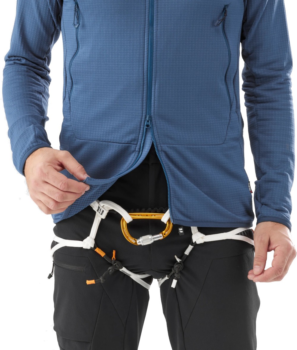 Millet Fusion Grid Hoodie to, średnio ocieplona, dopasowana kurtka o wszechstronnym zastosowaniu. Tego typu model posłuży jako warstwa docieplająca pod membraną ale przede wszystkim znajdzie swoje zastosowanie noszona solo jako ostatnia warstwa podczas eksploracji górskiej w umiarkowanych i dobrych warunkach pogodowych. Zastosowany materiał  Polartec Power Grid Heavy jest rozciągliwy i doskonale dopasowuje się do sylwetki użytkownika. Dzięki zastosowaniu specjalnej kostkowanej struktury wewnętrznej odprowadzenie nadmiaru wilgoci stoi na bardzo wysokim poziomie. Jednocześnie kurtka Millet Fusion Grid jest bardzo lekka i zajmuje niewiele miejsca po spakowaniu. Krótko mówiąc to klasyczny, lekki, dobrze oddychający, średnio ocieplony stretch, idealny na warunków od późnej wiosny do wczesnej jesieni.