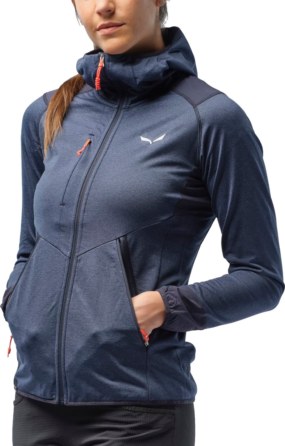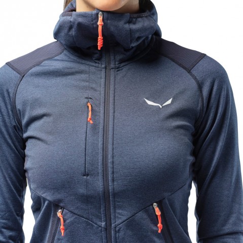 KURTKA POLAROWA SALEWA AGNER HYBRID POLARLITE DURASTRETCH HOODED JACKET WOMEN - BLUE NAVY BLAZER MELANGE