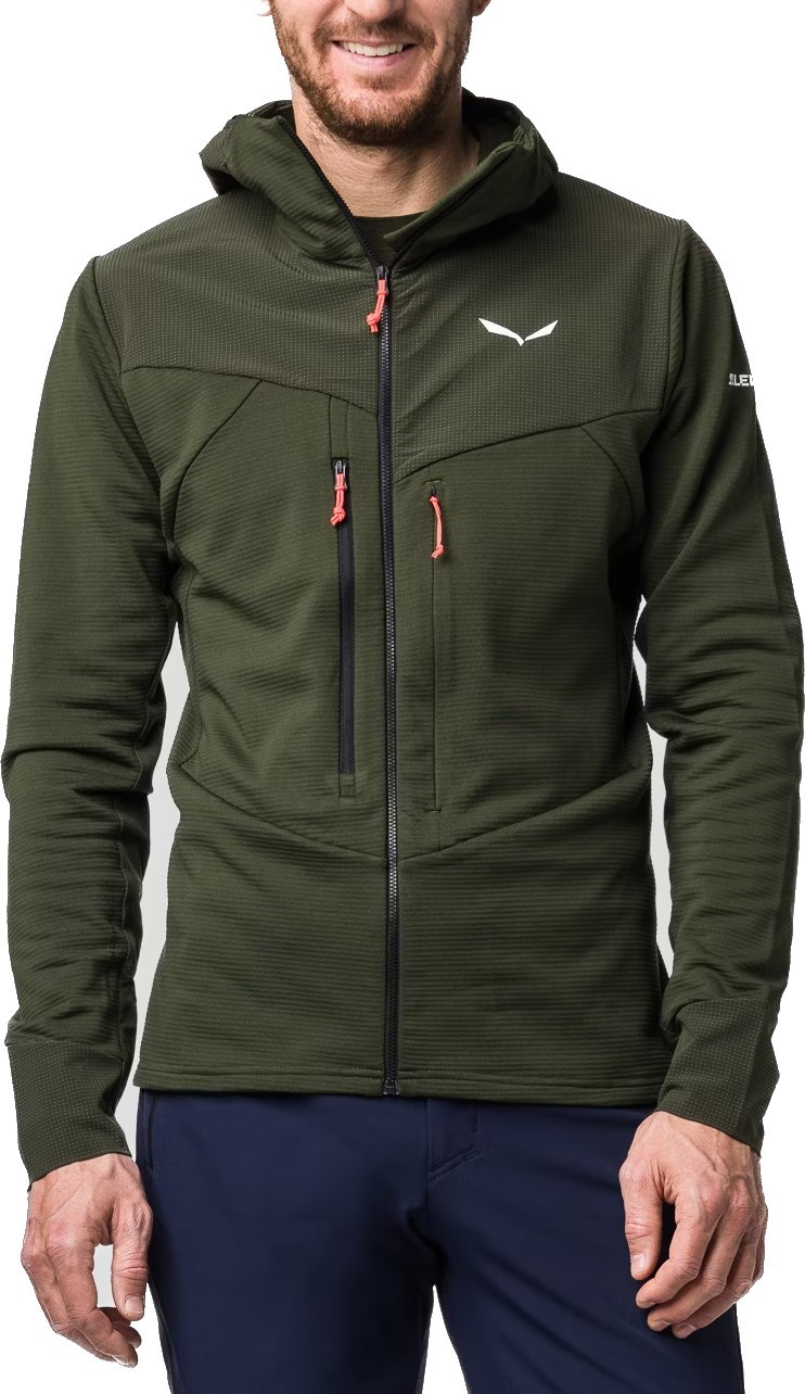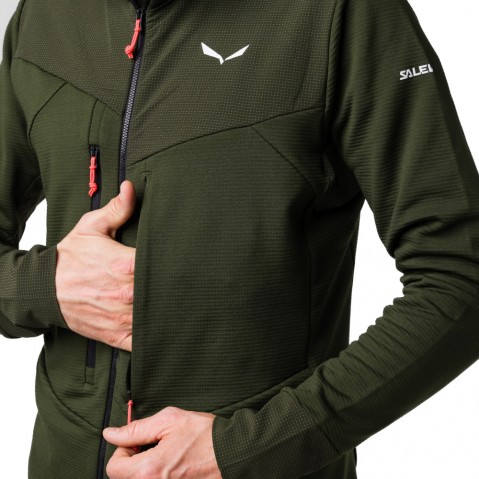 Kurtka polarowa Salewa Agner to ciepły i oddychający polar rozciągliwy w czterech kierunkach, wykonany z materiału o liniowej strukturze. Konstrukcja z mapą ciała obejmuje obszar ramion, który jest dodatkowo wzmocniony nakładkami softshell Durastretch dla zwiększenia odporności mechanicznej. Wszechstronny i dopasowany kaptur, zaprojektowany z myślą o zwiększonej mobilności i ochronie dzięki bocznym otworom ukrywającym paski kasku wspinaczkowego wewnątrz kołnierza oraz dwie duże kieszenie na piersi zapinane na zamek (jedna z ukrytym zamkiem) to najważniejsze udogodnienia. Sportowy krój z reglanową konstrukcją rękawów zapewnia pełną swobodę ruchów. Salewa Agner Polarlite jest idealnym rozwiązaniem dla warstwy środkowej do technicznej wspinaczki alpejskiej.