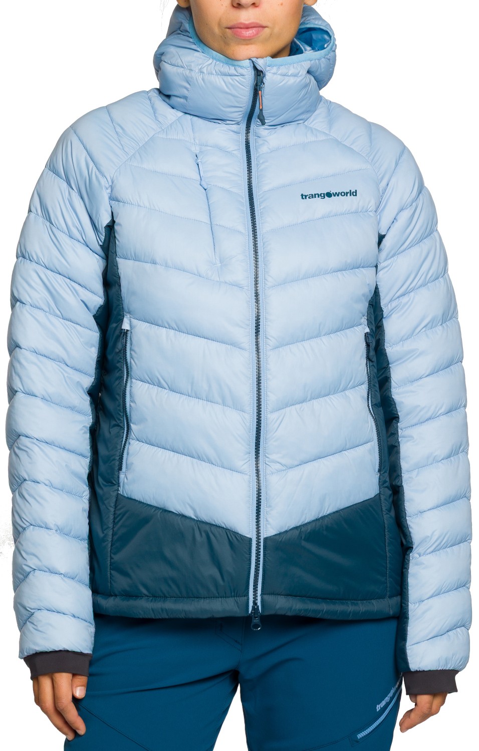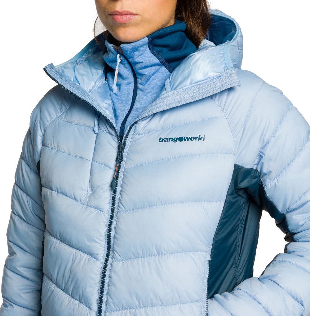 Damska kurtka Primaloft Trangoworld Rulhe V02 Jacket jest doskonałym ocieplaczem, zdolnym zapewnić izolację termiczną w niskich temperaturach. Dzięki zastosowaniu syntetycznej ociepliny Primaloft Cross Core o gramaturze 180g kurtka Trangoworld Rulhe V02 ochroni swoją użytkowniczkę nawet podczas największych mrozów. Większość kurtek ocieplanych, które są dostępne na rynku jest wyposażonych w ocieplinę o gramaturze 100g. Dodatkowe gramy ociepliny w kurtce Trangoworld Rulhe V02 pozwoli zabezpieczyć jej użytkowniczkę przed chłodem. Pod pachami i u spodu zastosowano ocieplinę o gramaturze 100g, to również więcej niż posiada większość innych modeli. Niebagatelne znaczenie dla kurtki zimowej Trangoworld Rulhe V02 ma zastosowany materiał zewnętrzny, który cechuje niewielka waga i wysoka wytrzymałość mechaniczna. Kurtka ocieplana Rulhe V02 dzięki zastosowaniu syntetycznej ociepliny świetnie będzie odprowadzać nadmiar wilgoci w sytuacji kiedy będzie noszona pod kurtą trekkingową wyposażoną w membranę. Jej konserwacja będzie o wiele prostsza niż w klasycznych kurtkach puchowych. Kurtka zimowa Rulhe V02 to również bardzo dobre dopasowanie, perfekcyjne wykonanie oraz nowoczesny, outdoorowy design z którego słynie marka Trangoworld.