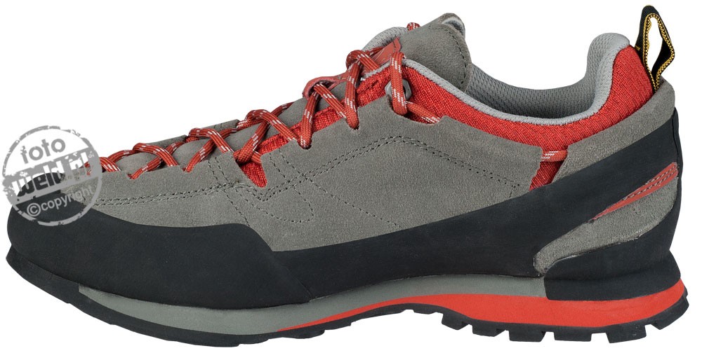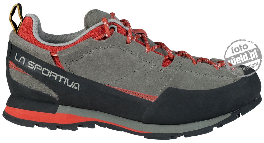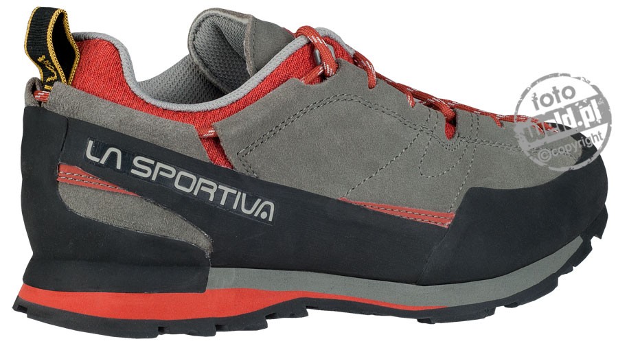 Buty podejściowe Boulder X to od kilkunastu lat klasyk w kolekcji La Sportiva. Buty podejściowe La sportiva Boulder to nie tylko świetne buty podejściowe ale również idealne buty na teren typu via ferrata. Podeszwa Vibram Impact Brake zapewnia doskonałą przyczepność na skale i pełną amortyzację stopy podczas marszu. Asymetryczny, oplatający stopę system wiązania sznurowadeł to doskonałe dopasowanie do stopy i pełna kontrola. Amortyzacja podeszwy została wykonana z materiału Eva, który chroni stopy użytkownika przed przemęczeniem. Wnętrze cholewki wyłożono materiałem typu mesh, który odprowadza wilgoć, jest przyjemny w dotyku i trwały. Oblanie przodu i boku ochroni buty podejściowe La Sportiva Boulder X przed niekorzystnym działaniem twardej skały w trudnym terenie podejściowym. Niskie buty górskie La Sportiva Boulder X, sprawdza się nie tylko w górach, jest to także świetny model dla osób, które w miejskiej dżungli preferują górski styl.
