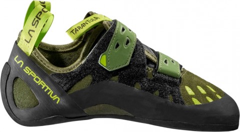 La Sportiva Tarantula to wygodne buty wspinaczkowe na rzepy o niskiej asymetryczności dla początkujących i średnio zaawansowanych wspinaczy. Asymetryczność butów wspinaczkowych nie wnosi nic szczególnego na prostych i średnio trudnych drogach. Asymetryczność w bucie wspinaczkowym ma kolosalnie negatywny wpływ na wygodę obuwia dla początkujących. La Sportiva Tarantula to idealne buty wspinaczkowe na pierwsze kroki w skałach oraz trening na panelu. Model ten także z powodzeniem można wykorzystać na łatwych drogach w skałach oraz podczas wspinaczki na drogach wielowyciągowych. Zastosowany materiał podeszwy Friction RS umożliwi wychodzenie po wyślizganych stopniach na ścianie. Podeszwa zapewnia także odpowiednie tarcie oraz wytrzymałość podczas wspinaczki w każdym typie skały. Zastosowana guma o grubości 5mm zapewni odpowiednie tarcie na różnych typach skały oraz na ścianie wspinaczkowej. Taka grubość pozwala początkującemu wspinaczowi bardzo długo cieszyć się butem bez dziur i przetarć. Mocowanie na rzepy pozwoli dokładnie i szybko dopasować buta do stopy oraz cieszyć się wygodą modelu. Cholewka nie została wyposażona w żadną okładzinę. Takie rozwiązanie zapewnia doskonałe odprowadzanie wilgoci a jednocześnie zwiększa czucie buta podczas wspinaczki. Tarantula to super jakość z jakiej słyną buty wspinaczkowe La Sportiva, a zarazem całkiem przyzwoita cena zakupu.