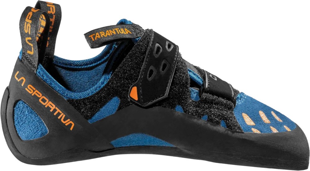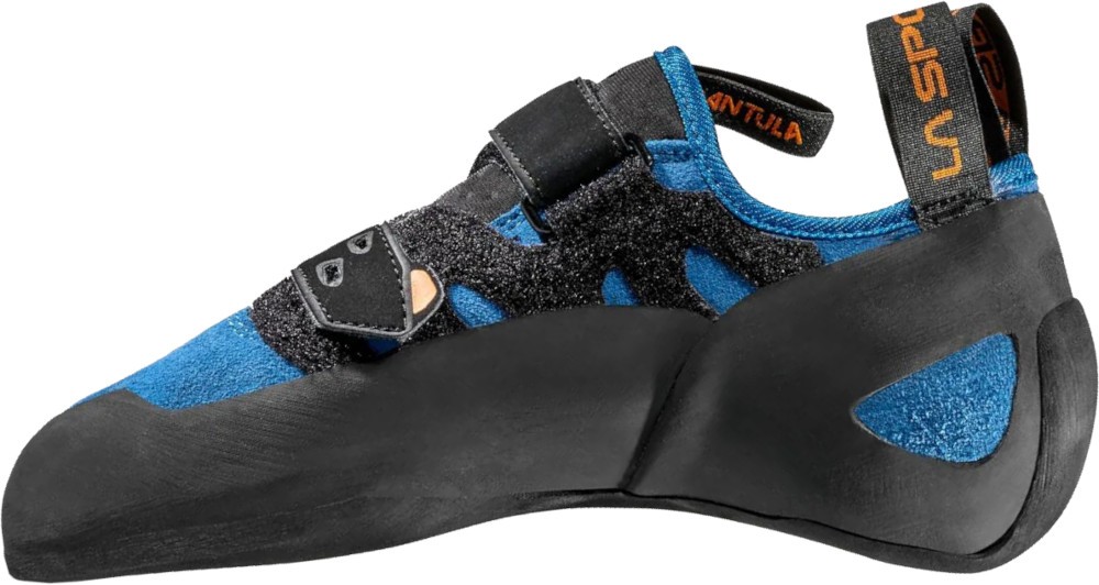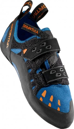 La Sportiva Tarantula to wygodne buty wspinaczkowe na rzepy o niskiej asymetryczności dla początkujących i średnio zaawansowanych wspinaczy. Asymetryczność butów wspinaczkowych nie wnosi nic szczególnego na prostych i średnio trudnych drogach. Asymetryczność w bucie wspinaczkowym ma kolosalnie negatywny wpływ na wygodę obuwia dla początkujących. La Sportiva Tarantula to idealne buty wspinaczkowe na pierwsze kroki w skałach oraz trening na panelu. Model ten także z powodzeniem można wykorzystać na łatwych drogach w skałach oraz podczas wspinaczki na drogach wielowyciągowych. Zastosowany materiał podeszwy Friction RS umożliwi wychodzenie po wyślizganych stopniach na ścianie. Podeszwa zapewnia także odpowiednie tarcie oraz wytrzymałość podczas wspinaczki w każdym typie skały. Zastosowana guma o grubości 5mm zapewni odpowiednie tarcie na różnych typach skały oraz na ścianie wspinaczkowej. Taka grubość pozwala początkującemu wspinaczowi bardzo długo cieszyć się butem bez dziur i przetarć. Mocowanie na rzepy pozwoli dokładnie i szybko dopasować buta do stopy oraz cieszyć się wygodą modelu. Cholewka nie została wyposażona w żadną okładzinę. Takie rozwiązanie zapewnia doskonałe odprowadzanie wilgoci a jednocześnie zwiększa czucie buta podczas wspinaczki. Tarantula to super jakość z jakiej słyną buty wspinaczkowe La Sportiva, a zarazem całkiem przyzwoita cena zakupu.