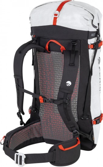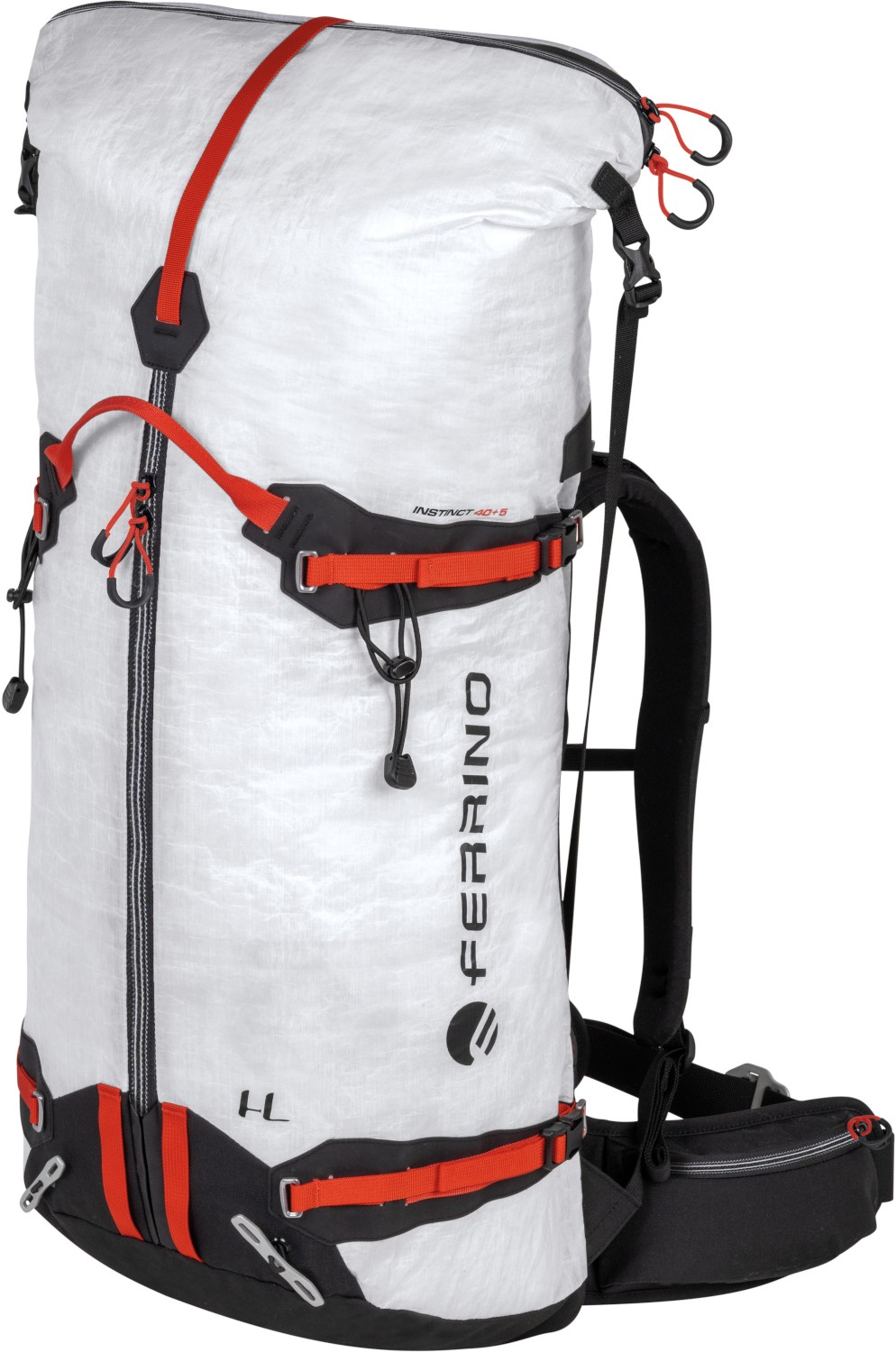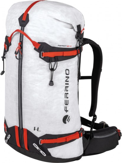 Ferrino Instinct 40 to bardzo lekki plecak wspinaczkowy wykonany z Dyneemy. Przy pojemności 40l Ferrino Instinct waży zaledwie 780g! Zastosowany materiał bazowy przy swojej niewielkiej wadze cechuje się bardzo wysoką wytrzymałością na uszkodzenia mechaniczne. Jednocześnie jest wodoszczelny i dopasowujący się do kształtów ekwipunku. Pozostałe elementy materiałowe zostały wykonane z wykorzystaniem ultra wytrzymałych włókien Cordura. Pomimo, że plecak waży niewiele, to w przeciwieństwie do konkurencji posiada całkiem rozbudowany system nośny. Specjalne profilowane poduszki na plecach i miękko wyściełany pas biodrowy umożliwiają wygodne transportowanie plecaka na plecach, co ma niebagatelne znaczenie zwłaszcza na długich podejściach. Plecak Ferrino Instinct został zaliczony do ekskluzywnej linii Highlab, która skupia produkty najwyższej jakości przeznaczone do działalności w najtrudniejszych warunkach gór wysokich.
