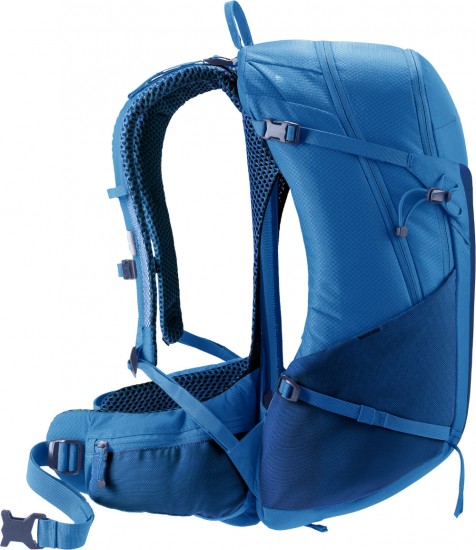 Nowoczesna forma połączona z funkcjonalnymi detalami - to seria Futura. Deuter Futura 27 to plecak najlepiej sprawdzający się podczas wycieczek górskich, turystycznych i rowerowych ale również jako plecak miejski. Idealny w upalne dni dzięki systemowi Deuter Aircomfort - siatka oddzielająca plecy od plecaka, niezastąpiony podczas upalnych wakacji, podróży w tropiki wszędzie tam gdzie upał jest trudny do zniesienia. System Aircomfort Sensic ma również niezastąpione znaczenie wtedy gdy używamy odzieży z membraną, w dni chłodne, deszczowe - wówczas siatka pozwala w niezakłócony sposób cyrkulować powietrzu i odprowadzać nagromadzoną wilgoć od ciała. Pas biodrowy został skonstruowany w taki sposób by nie przeszkadzać w mieście oraz w trakcie jazdy na rowerze. Boczne uchwyty umożliwiają dopięcie kijów, statywu, czekana. Plecak posiada dwie komory zapinane na suwak. System nośny poprzez wbudowanie dodatkowej pianki z miejscu styku pleców w odcinku dolnym z plecakiem lepiej przylega i stabilizuje plecak.