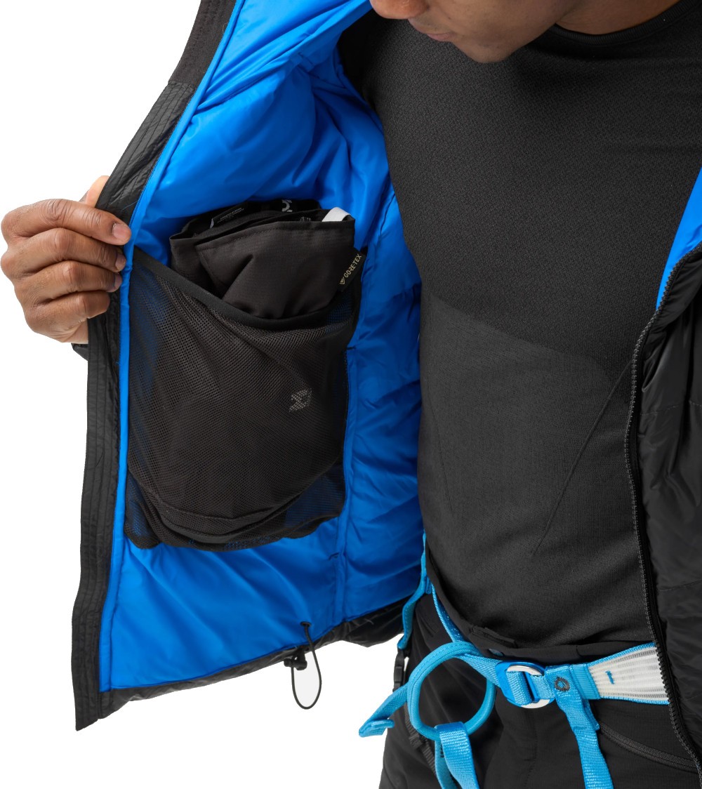 Średniej grubości puchówka, wykonana z puchu kaczego. Kurtka Millet Kamet Down została wykonana z innowacyjnego materiału poliamidowego, który jest lżejszy i bardziej trwały niż tradycyjne materiały. Dzięki innowacyjnej, bezszwowej konstrukcji komór i wypełnieniu z puchu kaczego o sprężystości 700 cuin z impregnacją K DRY, Kamet zapewnia bezpieczeństwo nie narażając na zimno swojego użytkownika. Obsługę kurtki Millet Kamet Down ułatwia konstrukcja zaprojektowana specjalnie do alpinizmu. Bezszwowa konstrukcja ramion zapobiega otarciom. Niezbędne akcesoria możemy trzymać pod ręką w dwóch wysokich kieszeniach zapinanych na zamek błyskawiczny oraz bezpiecznych kieszeniach wewnętrznych.