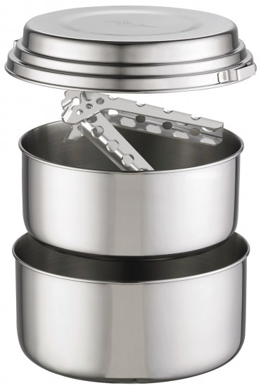 MSR Alpine 2 Pot to zestaw naczyń stalowych dla dwóch osób. Świetnie sprawdzi się w górach i na biwaku. Niska waga, doskonałej jakości stal i niewygórowana cena to podstawowe zalety tego modelu. Naczynia turystyczne MSR Alpine 2 Pot Set to solidny, lekki zestaw naczyń zaprojektowany z myślą o turystach, którzy potrzebują niezawodnego sprzętu do gotowania podczas swoich wypraw na świeżym powietrzu. Zestaw składa się z dwóch garnków o różnych pojemnościach, które oferują dużą uniwersalność i są dostosowane do różnych metod gotowania w warunkach outdoorowych. MSR Alpine 2 Pot Set to połączenie trwałości, funkcjonalności i niskiej wagi, które sprawiają, że jest to doskonały wybór na trekkingi, biwaki oraz inne wyprawy. Naczynia MSR Alpine 2 Pot Set zostały wykonane ze stali nierdzewnej, która jest bardzo lekkia, ale jednocześnie niezwykle wytrzymała.