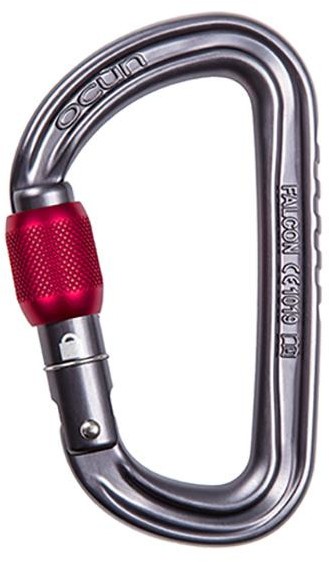 Karabinek wspinaczkowy Ocun Falcon Screw to wytrzymały model, który wykorzystuje zakręcany zamek, umożliwiający jego płynne zabezpieczenie. Karabinek zakręcany Ocun Falcon jest D-kształtnym modelem, zapewniającym wysoki komfort w trakcie wykonywania operacji linowych. Dzięki wykonaniu z aluminium cechuje się wytrzymałością, dbając o bezpieczeństwo wspinacza. Ponadto Ocun Falcon wyposażony został w zamek wykończony w konstrukcji K-lock, dzięki czemu nie zahacza on o taśmy podczas wykonywanych operacji sprzętowych. Dzięki zastosowaniu kolorowej anodyzacji karabinek zakręcany Ocun Falcon świetnie sprawdzi się do segregacji sprzętu na stanowisku jak i podczas transportu.