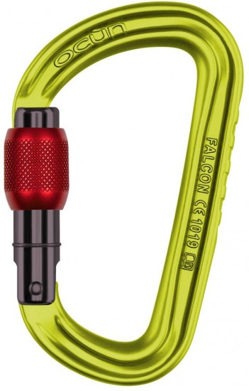 Karabinek wspinaczkowy Ocun Falcon Screw to wytrzymały model, który wykorzystuje zakręcany zamek, umożliwiający jego płynne zabezpieczenie. Karabinek zakręcany Ocun Falcon jest D-kształtnym modelem, zapewniającym wysoki komfort w trakcie wykonywania operacji linowych. Dzięki wykonaniu z aluminium cechuje się wytrzymałością, dbając o bezpieczeństwo wspinacza. Ponadto Ocun Falcon wyposażony został w zamek wykończony w konstrukcji K-lock, dzięki czemu nie zahacza on o taśmy podczas wykonywanych operacji sprzętowych. Dzięki zastosowaniu kolorowej anodyzacji karabinek zakręcany Ocun Falcon świetnie sprawdzi się do segregacji sprzętu na stanowisku jak i podczas transportu.