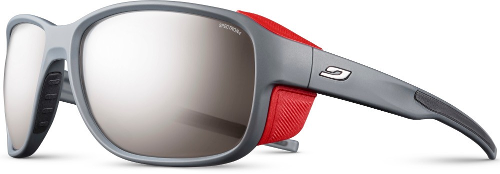 Spectron 4 to soczewki wykonane z Policarbonu, które zatrzymują 95% światła widzialnego i zapewniają stuprocentową ochronę przeciw promieniom UVA, UVB, UVC. Wysoki stopień przyciemnienia szkieł lokuje je w czwartej, najwyższej kategorii Julbo i predysponuje je do działań nawet w najbardziej nasłonecznionym środowisku.