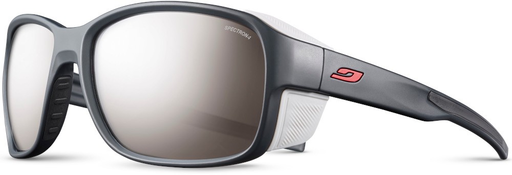 Spectron 4 to soczewki wykonane z Policarbonu, które zatrzymują 95% światła widzialnego i zapewniają stuprocentową ochronę przeciw promieniom UVA, UVB, UVC. Wysoki stopień przyciemnienia szkieł lokuje je w czwartej, najwyższej kategorii Julbo i predysponuje je do działań nawet w najbardziej nasłonecznionym środowisku.