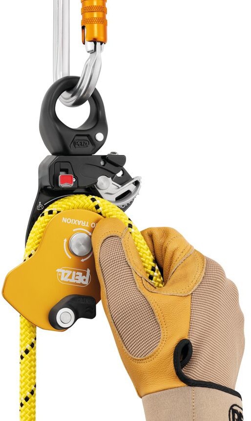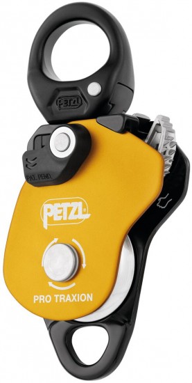 Petzl Pro Traxion to niezwykle wydajny bloczek z blokadą. Rolkę o dużej średnicy zamontowano na wodoszczelnych łożyskach kulkowych. Bloczek posiada ruchomą okładkę dzięki której można montować w nim line w prosty sposób a dodatkowy otwór pozwala na dodatkowe uchwycenie go w stanowisku. Petzl Pro Traxion może być stosowany zarówno jako sprzęt do pracy na wysokościach jak i innych czynności około wspinaczkowych. Możliwość otwarcia bloczka, nawet gdy jest wpięty do stanowiska. Bloczek z blokadą Petzl Pro Traxion został zaprojektowany do układów do wyciągania. Dzięki rolce o dużej średnicy na szczelnym łożysku kulkowym i znaczącej wydajności, jest szczególnie przystosowany do wyciągania dużych ciężarów. Krętlik ułatwia operowanie bloczkiem pod obciążeniem: umożliwia jego orientację i bezpośrednie wpięcie karabinków, lin lub taśm.