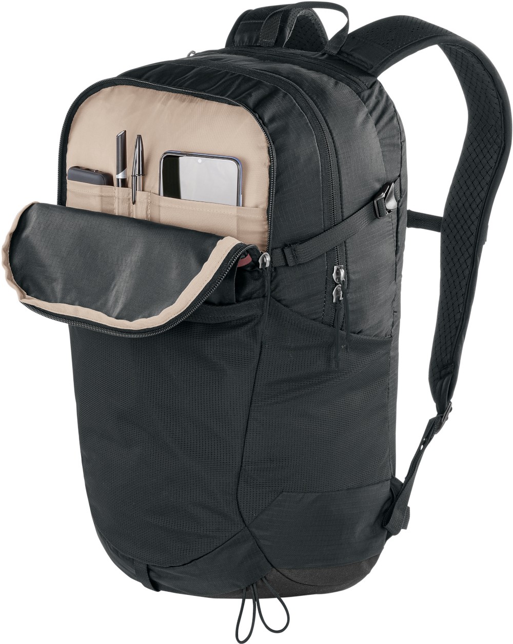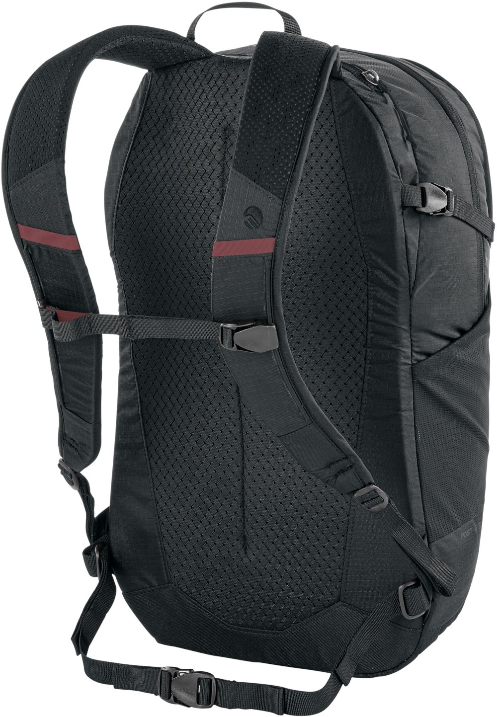 Ferrino Post 25 to wielofunkcyjny plecak odpowiedni do przemieszczania się do pracy w mieście, ale także w podróży i jako poręczny środek do noszenia rzeczy osobistych w czasie wolnym. Post 25 został wyposażony w wewnętrzną kieszeń z wyściełanym dnem do noszenia laptopa i wewnętrzny organizer w przedniej kieszeni. Ferrino Post 25 posiada dopasowany i oddychający system nośny. Na plecach zostały umieszczone poduszki wykonane z materiału typu 3D mesh, które zapewniają doskonałe dopasowanie do pleców użytkownika oraz wentylację. Anatomicznie profilowane pasy ramienne również zostały wyściełane miękką i oddychającą pianką, dzięki czemu całość doskonale się układa na plecach użytkownika. Prosty pas biodrowy pozwoli ustabilizować plecak na plecach podczas długich podejść, w razie konieczności można go szybko zdemontować. W obszernej komorze głównej zmieścimy sporo dodatków, znajduje się w niej również bezpieczne miejsce na laptop. Wytrzymały, podwójny suwak zamyka wejście do komory głównej plecaka i zapewnia szybki dostęp do wnętrza. Ferrino Post jest plecakiem, który może spełnić zadanie daypacka ale sprawdzić się także w górach i na wyjeździe trekkingowym.