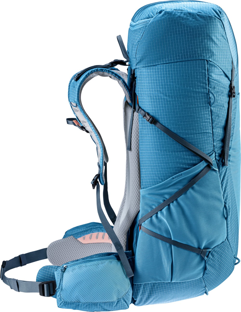 Deuter Aircontact Ultra to super lekki plecak do trekkingu i turystyki. Deuter Aircontact Ultra 50+5 jest idealnym plecakiem na kilkudniowe wypady w góry lub poza miasto, dzięki jego efektywnej kompresji może służyć zarówno jako plecak jednodniowy jak i jako główny plecak transportowy przy kilkudniowych wypadach. Podstawową zaletą tego modelu jest to, że przy maksymalnym załadowaniu wynoszącym 55 litrów waży tylko 1270g! Jego smukła sylwetka pozwala pokonywać najbardziej ekstremalne przejścia, szeroki pas biodrowy doskonale przenosi ciężar ładunku na biodra. Możliwość precyzyjnej regulacji systemu nośnego do wzrostu poprawia zastosowany system Adaptive Fit. Boczne troki kompresyjne pozwalają na efektywne zmniejszenie jego pojemności. W modelu Deuter Aircontact Ultra, zastosowano system zapięcia pasa biodrowego poprzez ściągnięcie troków przed sobą, taki mechanizm wymaga od użytkownika zdecydowanie mniej siły przy zapięciu pasa oraz zdecydowanie poprawia precyzję jego dopasowania. Dodatkowo od frontu plecak posiada dużą elastyczną kieszeń, umożliwiającą schowanie kurtki, kasku lub mokrych rzeczy i szybsze tym samym ich wysuszenie.