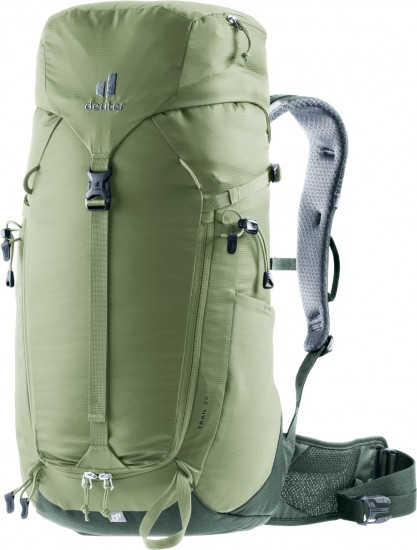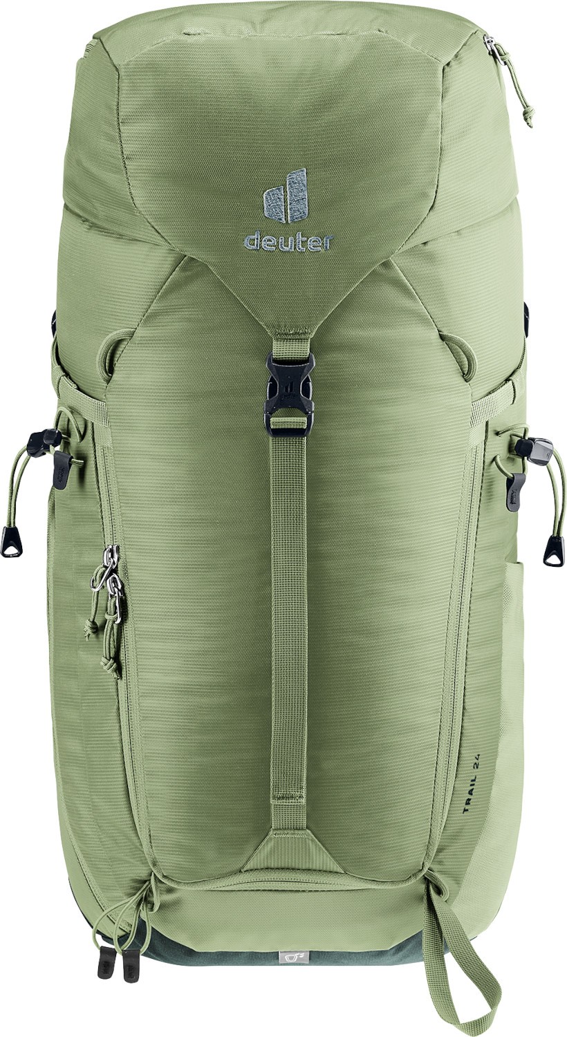 Seria plecaków Deuter Trail została stworzona z myślą o osobach poszukujących funkcjonalnego i bardzo lekkiego plecaka do wszelkiego rodzaju aktywności. Plecak Deuter Trail 24 posiada jedną komorę do której dostęp możliwy jest od strony komina lub od frontu poprzez szerokie rozpięcie biegnące pod kieszenią znajdującą się z przodu plecaka. Trail posiada dużą ilość kieszeni - pozwalających właściwie segregować bagaż. Z boku znajduje się kieszeń zapinana na suwak. System nośny stanowią dwa rzędy poduszek wypełnionych pianką Aircontact z poprzecznymi przecięciami umożliwiającymi cyrkulację powietrza. System nośny dodatkowo napina elastyczny pręt Derlin, pozwalający nosić większe ładunki bez zniekształcenia kształtu plecaka. We wszystkich modelach serii Trail anatomiczny pas biodrowy posiada nowy sposób zapięcia, poprzez ściągnięcie obu troków do przed sobą (taki mechanizm zapinania pasa wymaga zdecydowanie mniej siły przy ściąganiu troków oraz zapewnia precyzyjniejsze dopasowanie go do bioder).