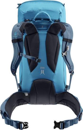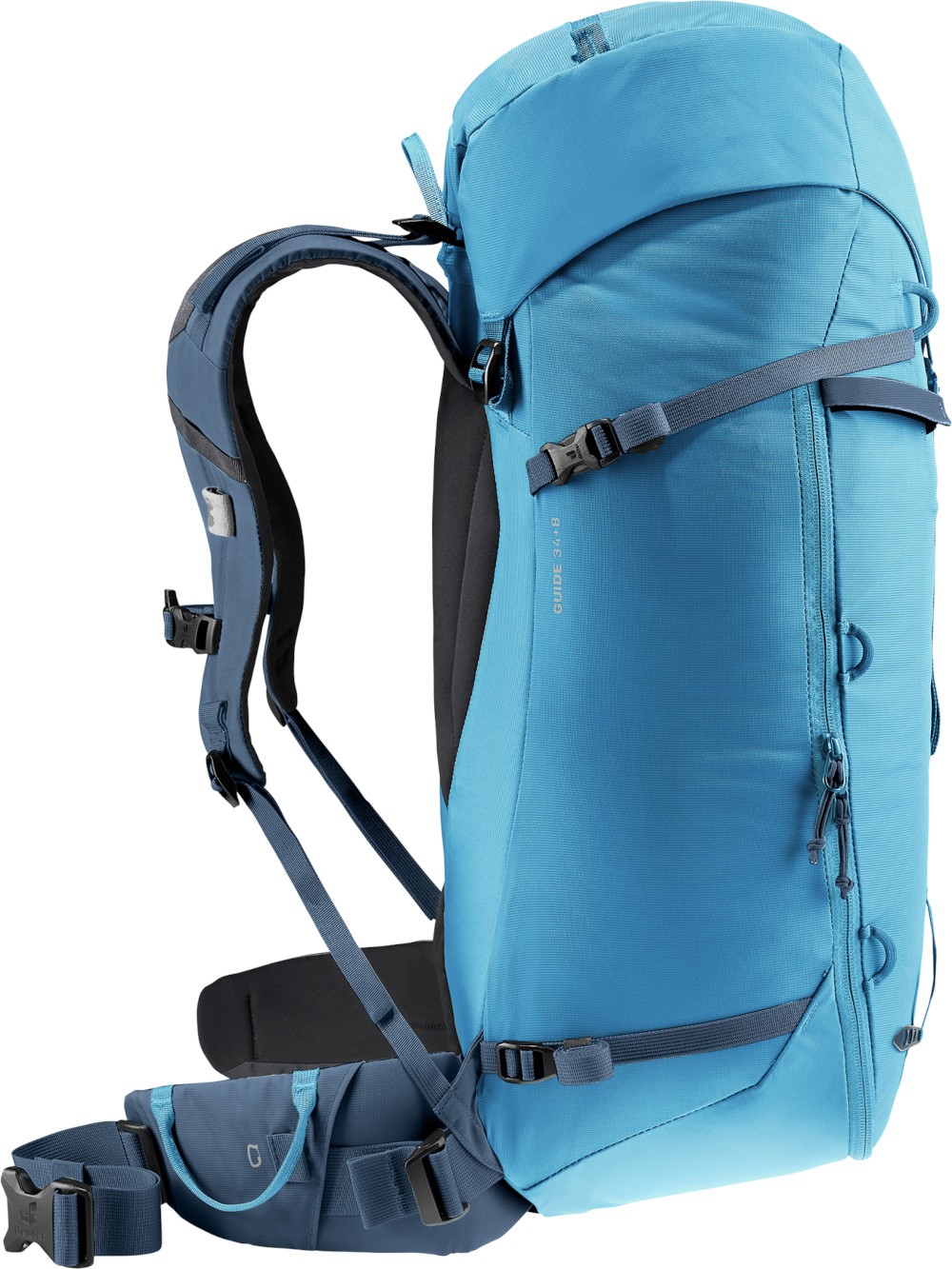 Plecak wspinaczkowy Deuter Guide 34+ 8 to świetna propozycja na wspinanie w każdej formie ale także na trekking. Jest to konstrukcja przeznaczona dla wymagających - plecak jest lekki, waży jedyne 1180g, posiada obwodowe wejście od frontu, oczywiście zabezpieczone zamkiem YKK, przez które możemy dostać się do plecaka. System nośny Deuter Alpine jest oparty na ramie typu V i bardzo dobrze przenosi obciążenia. Plecy i pasy są wyłożone oddychającą pianką 3D - dla polepszenia oddychalności zastosowano pionowy kanał wentylacyjny. Plecak wspinaczkowy Deuter Guide posiada boczne troki kompresyjne do których możemy przymocować narty lub karimatę, mocowania na czekan, kieszeń i wyjście na camel bag, demontowalny pas biodrowy (system Vari Flex) ze szpejarkami i wiele innych, przydatnych udogodnień.