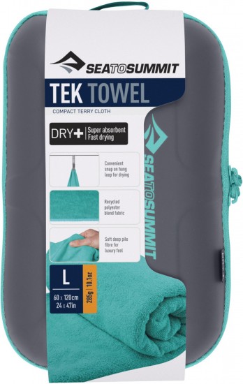 Ręcznik szybkoschnący z mikrofibry Sea to Summit Tek Towel. Doskonale absorbuje wilgoć i szybko wysycha, w komplecie z wygodnym, oddychającym etui. Ręcznik Tek Towel został wykonany z miłej w dotyku mikrofibry. Syntetyczny materiał w tym modelu chłonie aż do sześciu razy więcej wody, niż wynosi jego waga, poza tym ma właściwości szybkoschnące. Ręcznik Tek Towel ma praktyczną pętelkę, dzięki której ręcznik można zawiesić na wieszaczku. W zestawie z dołączony jest pokrowiec, który jest zamykany na zamek. Ręcznik szybkoschnący Tek Towel po spakowaniu zajmuje niewiele miejsca, dzięki czemu w łatwy sposób możesz go zabrać w podróż.