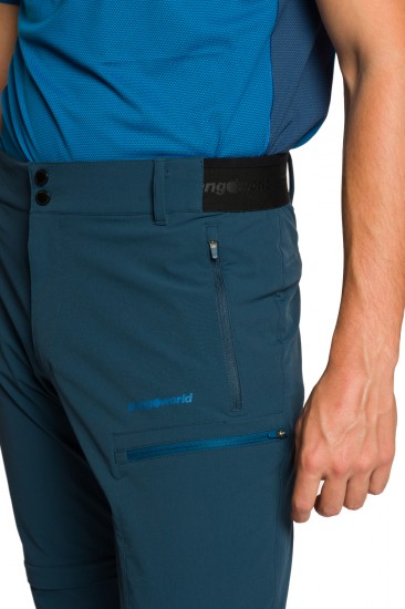 Trangoworld Palec DF to spodnie trekkingowe wykonane z rozciągliwego materiału wyposażone w odpinane i rozpinane nogawki. Trangoworld Palec to nowoczesne spodnie pełne ukrytych rozwiązań, które świetnie sprawdzą się nawet podczas najdłuższego i najtrudniejszego trekkingu. Spodnie trekkingowe Trangoworld Palec DF są bardzo wytrzymałe i doskonale transportują nagromadzoną podczas wysiłku wilgoć oraz bardzo szybko schną po zamoczeniu. Zastosowanie elastycznej i mocnej tkaniny 4ForMove Stretch, pomimo dopasowanego kroju, zapewnia pełną swobodę ruchów. Na dodatkową wygodę wpływa elastyczny pas umożliwiający łatwe i szybkie dopasowanie spodni do kształtów użytkownika. Najważniejszą cechą modelu Palec są odpinane nogawki. W razie konieczności spodnie błyskawicznie można przerobić na shorty. Spodnie trekkingowe Trangoworld Palec DF posiadają kilka kieszeni zapinanych zamkami, które są zdolne pomieścić sporo niezbędnych trekkingowych akcesoriów.