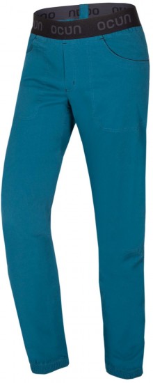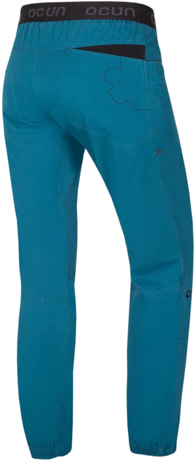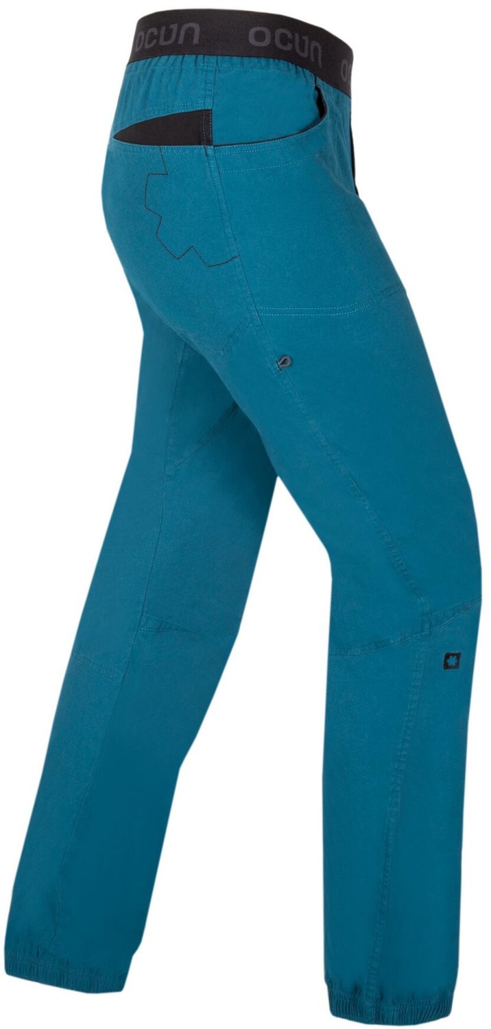 Ocun Jaws Pants to bawełniane spodnie wspinaczkowe zaprojektowane tak, żeby były przede wszystkim wygodne i nie ograniczały ruchów. Jaws Pants dobrze sprawdzają się zarówno podczas wspinaczki na ścianie, jak i w skałach czy na boulderach. Są wykonane z materiału, który łączy naturalną bawełnę z dodatkiem elastanu, dzięki czemu są miękkie, przyjemne w noszeniu i lekko się rozciągają. To sprawia, że Jaws łatwo dopasowują się do ciała i nie przeszkadzają przy dynamicznych ruchach ani wysokim podnoszeniu nóg. Mają luźniejszy, ale przemyślany krój, który daje dużą swobodę. Elastyczny pas dobrze trzyma spodnie na miejscu i sprawia, że są wygodne także pod uprzężą. Nogawki zakończone są elastycznymi ściągaczami, co pomaga lepiej kontrolować pracę nóg i zapobiega zahaczaniu materiału. Spodnie Ocun Jaws są też praktyczne, mają kieszenie na drobiazgi i dodatkowe detale przydatne we wspinaniu, jak np. miejsce na szczoteczkę do chwytów. Materiał zastosowany w Ocun Jaws jest przewiewny, więc nadają się również na cieplejsze dni. W praktyce to uniwersalne, wygodne spodnie dla osób, które się wspinają i szukają czegoś do regularnego używania, zarówno na trening, jak i wyjazdy w teren.