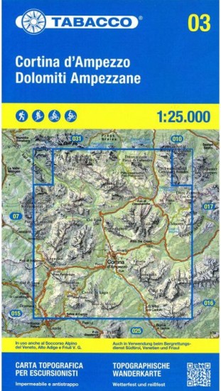 Doskonała mapa w skali 1:25 000. Mapa Tabacco to najlepsza na rynku pozycja opisująca rejon Cortiny dAmpezzo i otaczających ją Dolomitów. Precyzyjnie pokazuje przebieg grani, dolin i lodowców. Wszystkie szlaki, ferraty i podejścia są dokładnie wyrysowane. Zrozumiała i przejrzysta treść oraz doskonały, kredowy papier to sygnatura wszystkich map wydawnictwa Tabacco.