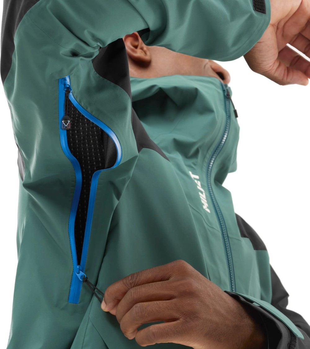 Wytrzymała, lekka i pakowna kurtka wykonana z najlżejszej wersji membrany Pro. Millet Trilogy Icon wykonano z materiału Gore - Tex Pro 3L, który zapewnia doskonałą wodoszczelność i oddychalność. To rewelacyjna, trzywarstwowa, super lekka membrana firmy Gore o ripstopowym wykończeniu. Kurtka trekkingowa Millet Icon została pozbawiona zbędnych wzmocnień i dodatkowych elementów, dzięki czemu jest bardzo lekka ale nadal pozostaje techniczną skorupą. Specjalnie pochylone kieszenie Millet Icon o układzie komór do zewnątrz umożliwiają przechowywanie elementów ekwipunku a w razie sytuacji podbramkowej pozwalają na schowanie dłoni wewnątrz, wygodnie, z założonymi rękoma tak, aby maksymalnie móc ogrzewać klatkę piersiową. Ze względu na całą mnogość wszelkiego typu udogodnień technicznych model ten znalazł się w topowej linii Trilogy. To co go wyróżnia, to kieszenie V Icon, niezwykle lekki ale wytrzymały materiał bazowy i szwy, które podklejono taśmą o szerokości 13mm, w przeciwieństwie do większości kurtek, gdzie używa się taśmy 10mm. Stosunkowo luźny krój umożliwi schowanie pod pancerz sporej warstwy termicznej, koniecznej podczas zimowej eksploracji górskiej. Doskonała propozycja dla osób potrzebujących pancernika w wersji kieszonkowej.
