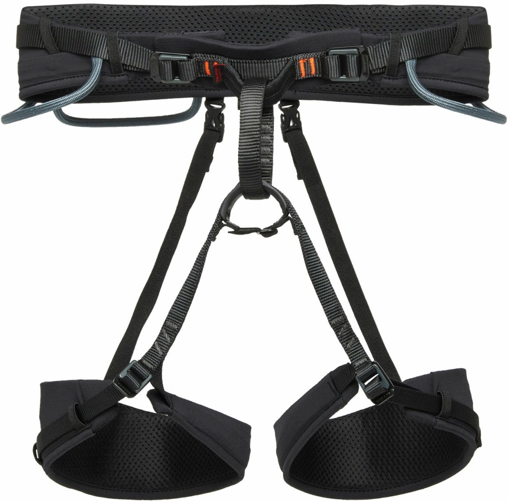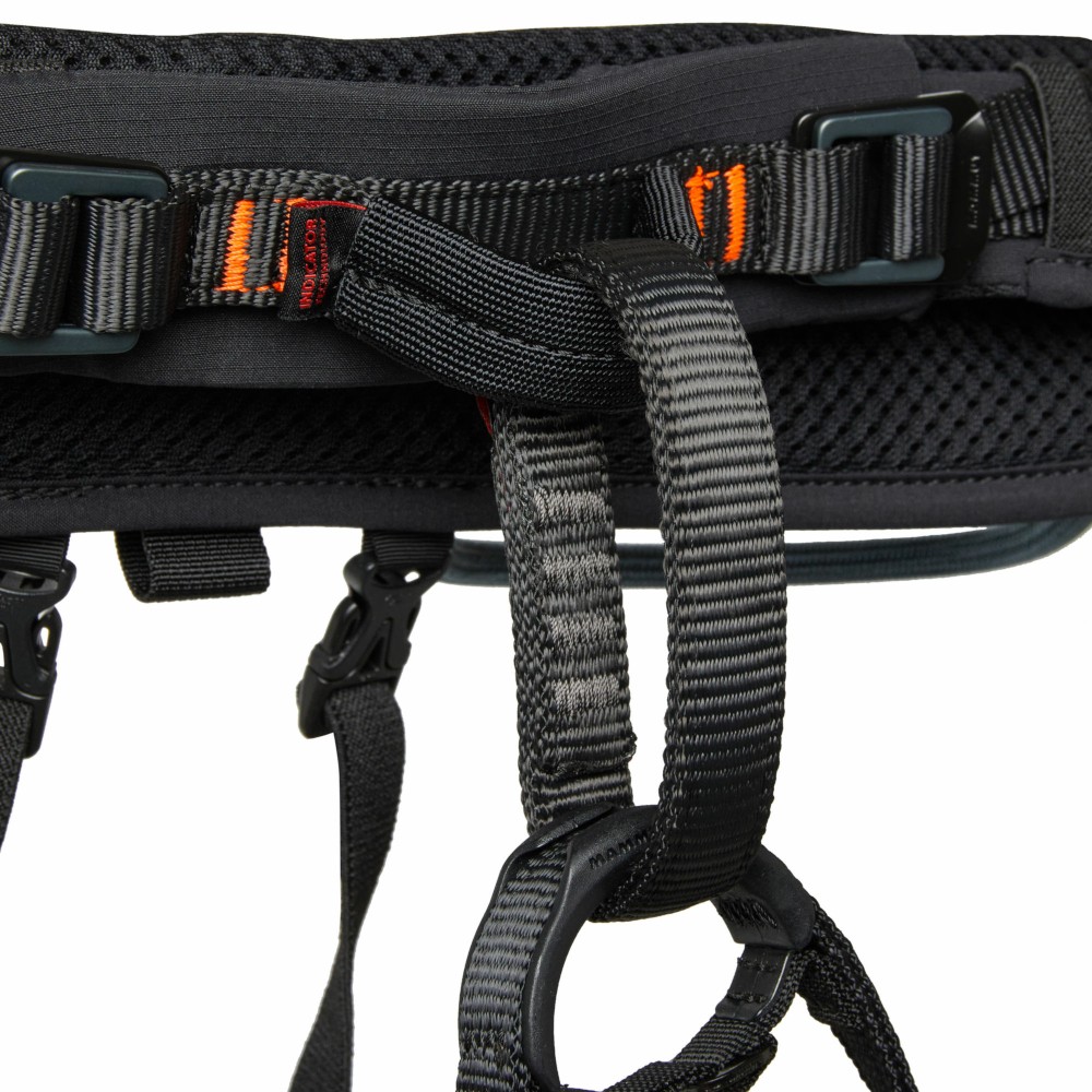 Uprząż wspinaczkowa Mammut Ophir 4 Slide 2.0 to podstawowa uprząż multifunkcjonalna w kolekcji Mammut. Uprząż wspinaczkowa Mammut Ophir to wygodny model wykonany w technologii podwójnych pasów. Pas biodrowy i pasy udowe zostały wykonane ze wzmocnionych pasów biegnących po ich obrzeżach. Przestrzeń pomiędzy pasami została wypełniona miękkimi i przyjemnymi w dotyku piankami. Takie rozwiązanie zapewnia niesamowitą wygodę podczas wspinania dzięki ergonomicznemu rozłożeniu wagi osoby wspinającej w uprzęży. System pasów ma zadanie zwiększyć wytrzymałość mechaniczną uprzęży - wszelkie siły działające na uprząż najczęściej rozkładają się na jej obrzeżach. Materiał zastosowany pomiędzy pasami zewnętrznymi zapewnia doskonałą wentylację, nawet podczas długotrwałego korzystania z uprzęży. Uprząż wspinaczkowa Mammut Ophir została wyposażona w szybkie klamry Mammut Slide Block. Zastosowanie szybkich klamer zapewnia szybkie proste i niewymagające nadmiaru siły regulowanie obwodu. Cały niezbędny podczas wspinania sprzęt wspinaczkowy pomieścimy w czterech, wygodnych w obsłudze usztywnionych szpejarkach. Łącznik uprzęży wyposażono w opatentowany system Protector - specjalny element, wykonany z mocnego tworzywa zabezpiecza łącznik przed uszkodzeniami mechanicznymi. Uprząż Mammut Ophir to model, który kładzie nacisk na bezpieczeństwo. Zastosowane taśmy zostały wzmocnione, a newralgiczne punkty wykonano w technologii Mammut Indicator - wpleciona podczas procesu technologicznego czerwona nitka zaczyna być widoczna wraz z postępującym zużyciem mechanicznym uprzęży. W zestawie znajduje się woreczek transportowy wykonany z siatki. Uprząż Mammut Ophir 4 Slide to uniwersalna uprząż dedykowana dla początkujących i średnio-zaawansowanych wspinaczy. Dzięki czterem punktom regulacji, uprząż Mammut Ophir z powodzeniem może być wykorzystywana podczas turystyki górskiej, wspinania wielo-wyciągowego lub też na via-ferratach.