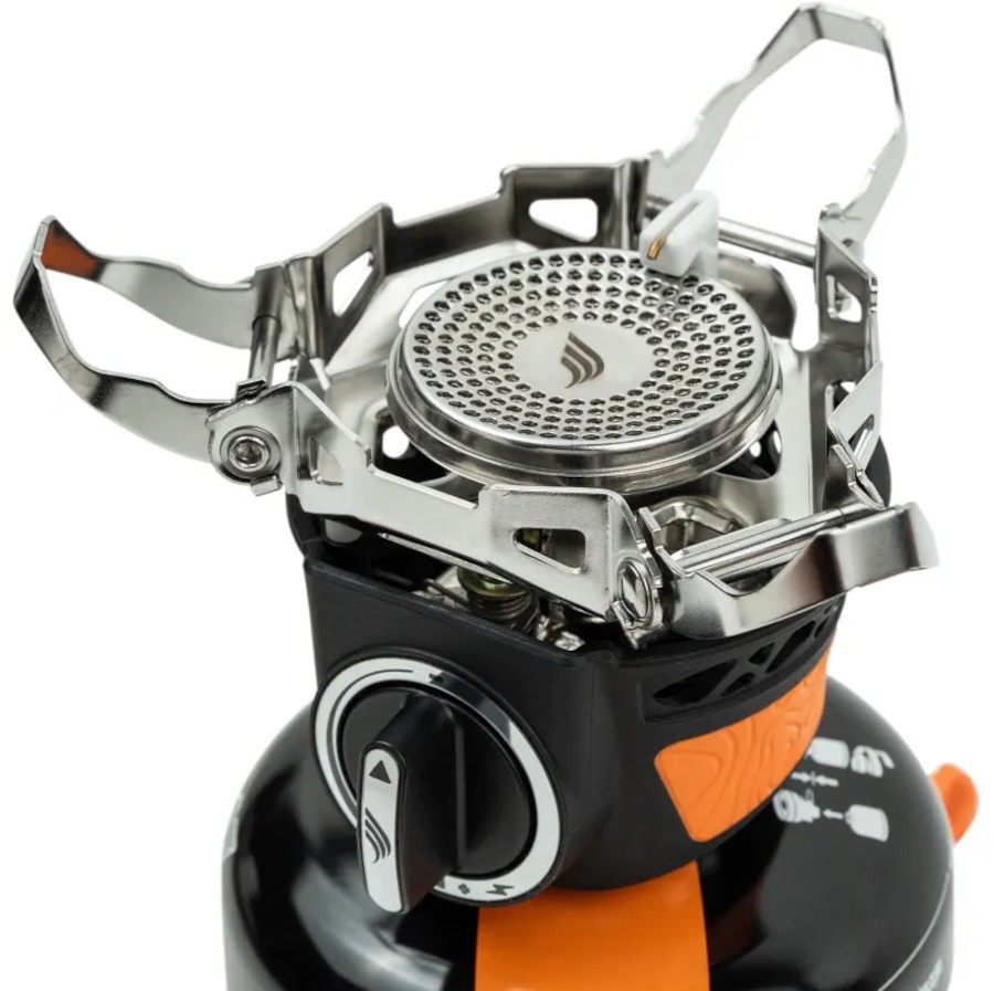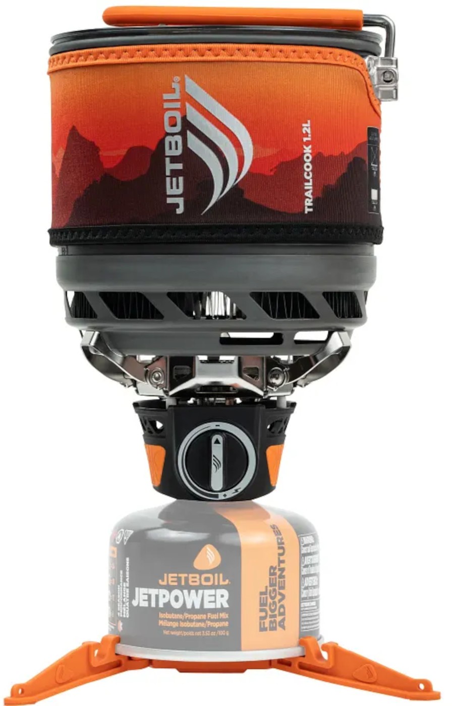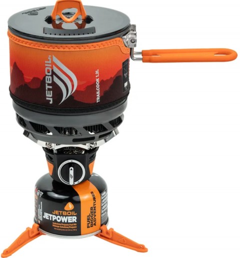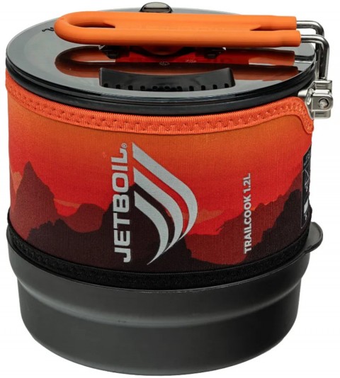 Jetboil Trailcook 1.2l jest idealny na wycieczki i odległe kemping. Jetboil Trailcook 1.2L to wysoce wydajny zestaw do gotowania przeznaczony dla turystów i campingowiczów. Urządzenie to charakteryzuje się wydajnością około 80%. Dla klasycznych palników wydajność mieści się w przedziale od 20% do 30% a większość wygenerowanej energii jest tracona na ogrzewanie przestrzeni wokół garnka. Wysoką sprawność Jetboil Trailcook uzyskuje dzięki specjalnej, zintegrowanej z pojemnikiem na wodę dyszy i palnikowi z osłonami przeciwwietrznymi. Cały płomień zostaje skierowany pod menażkę z wodą a wygenerowana przez palnik energia zostaje maksymalnie wykorzystana (technologia Flux Ring). Menażka została wyposażona w warstwę izolacyjną, zapobiegającą utracie ciepła i poparzeniom dłoni. Palnik Jetboil Trailcook pozwala na zagotowanie pół litra wody w przeciągu dwóch minut (kartusz 100g to aż 10l wrzątku!). Do urządzenia można zamontować wszystkie kartusze zakręcane na gwint ale tylko stugramowe możemy schować wewnątrz menażki. Wszystkie elementy palnika Jetboil Trailcook są chowane w menażce - cały zestaw jest niewielki po spakowaniu i łatwy do spakowania w plecaku. Na Jetboil składa się palnik z piezoelektrykiem, naczynie z radiatorem i pokrywką, Pot Support przytrzymujący garnek, podstawka na kartusz oraz osłona termiczna naczynia. Model Jetboil Trailcook ma piezozapalnik umieszczony wewnątrz palnika, co w znaczący sposób niweluje ryzyko rozbicia ceramicznej osłony zapalnika. Jetboil Trailcook sprawdzi się w każdych warunkach. Jest niezastąpiony podczas biwaku, przyśpiesza także gotowanie podczas mniej zaawansowanego wyjścia turystycznego.
